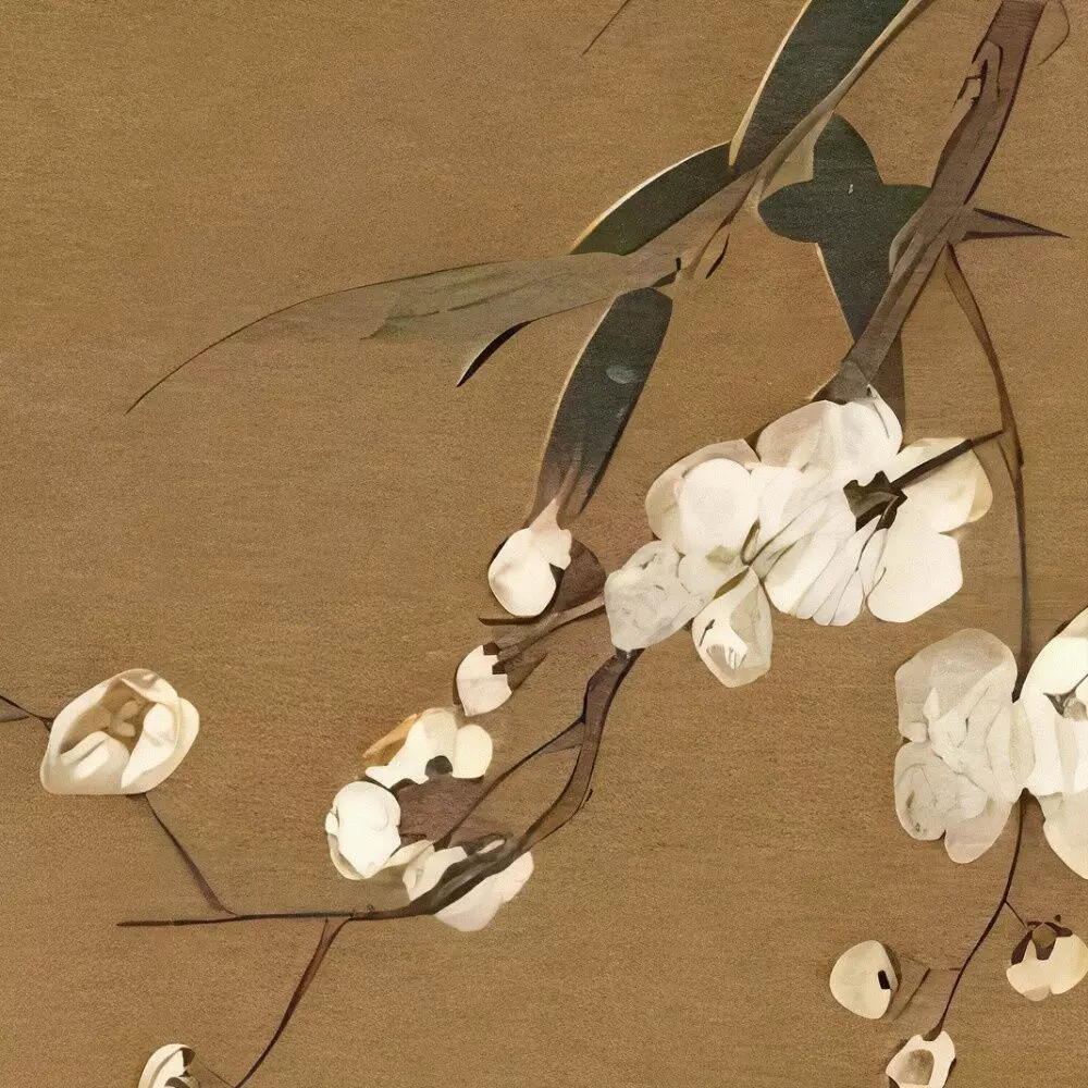 اللون البني كلون أساسي مع ألوان ثانوية متعددة داخل اللوحة، متناغمة مع الإطار والطبقة العاجية لإحساس دافئ ومتوازن.