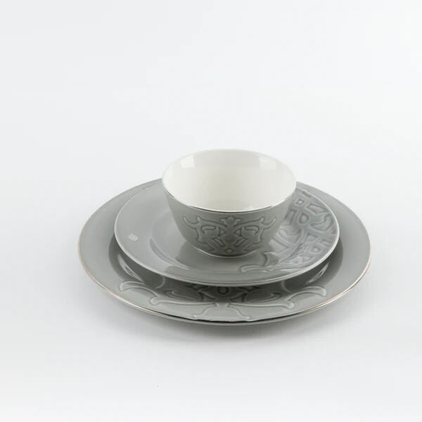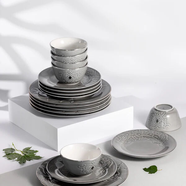 أنت تراجع:طقم مائدة 18 قطعة من نقش - رمادي وفضي