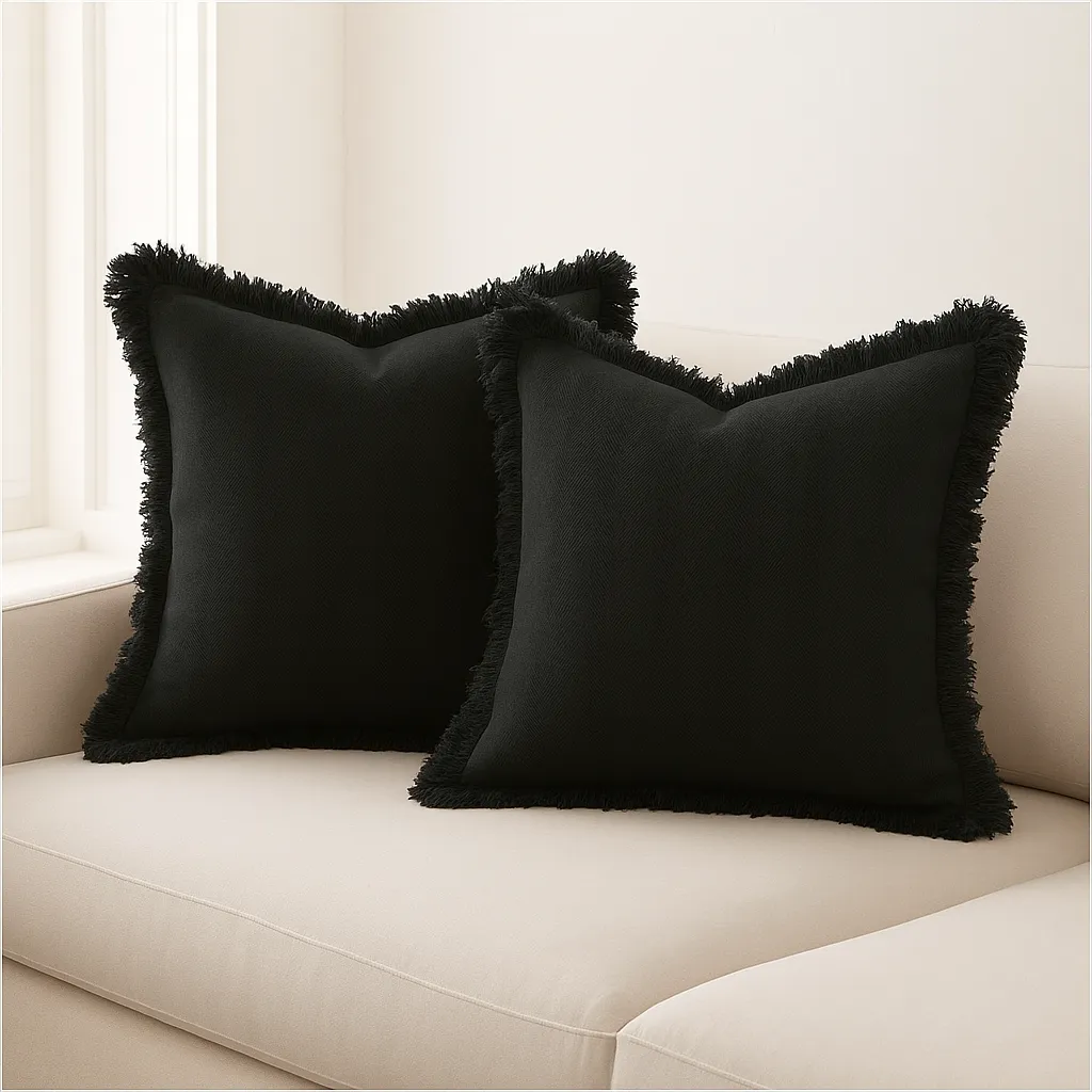 أنت تراجع:غطاء وسادة ديكور بدون حشوة سادة رالي - اسود