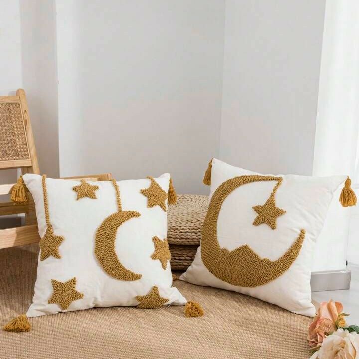 أنت تراجع:غطاء وسادة ديكور نجوم و هلال بدون حشوة - اصفر