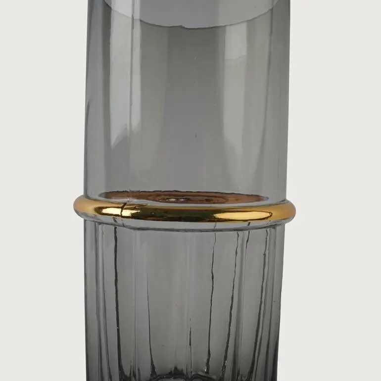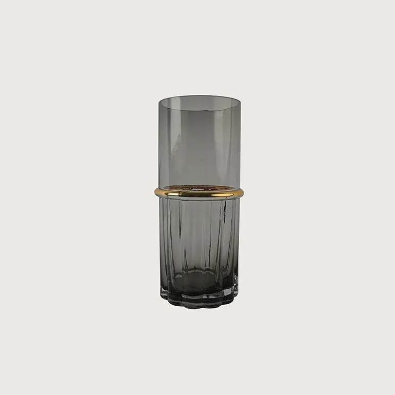 فازة زجاجية تيميل - رمادي وذهبي