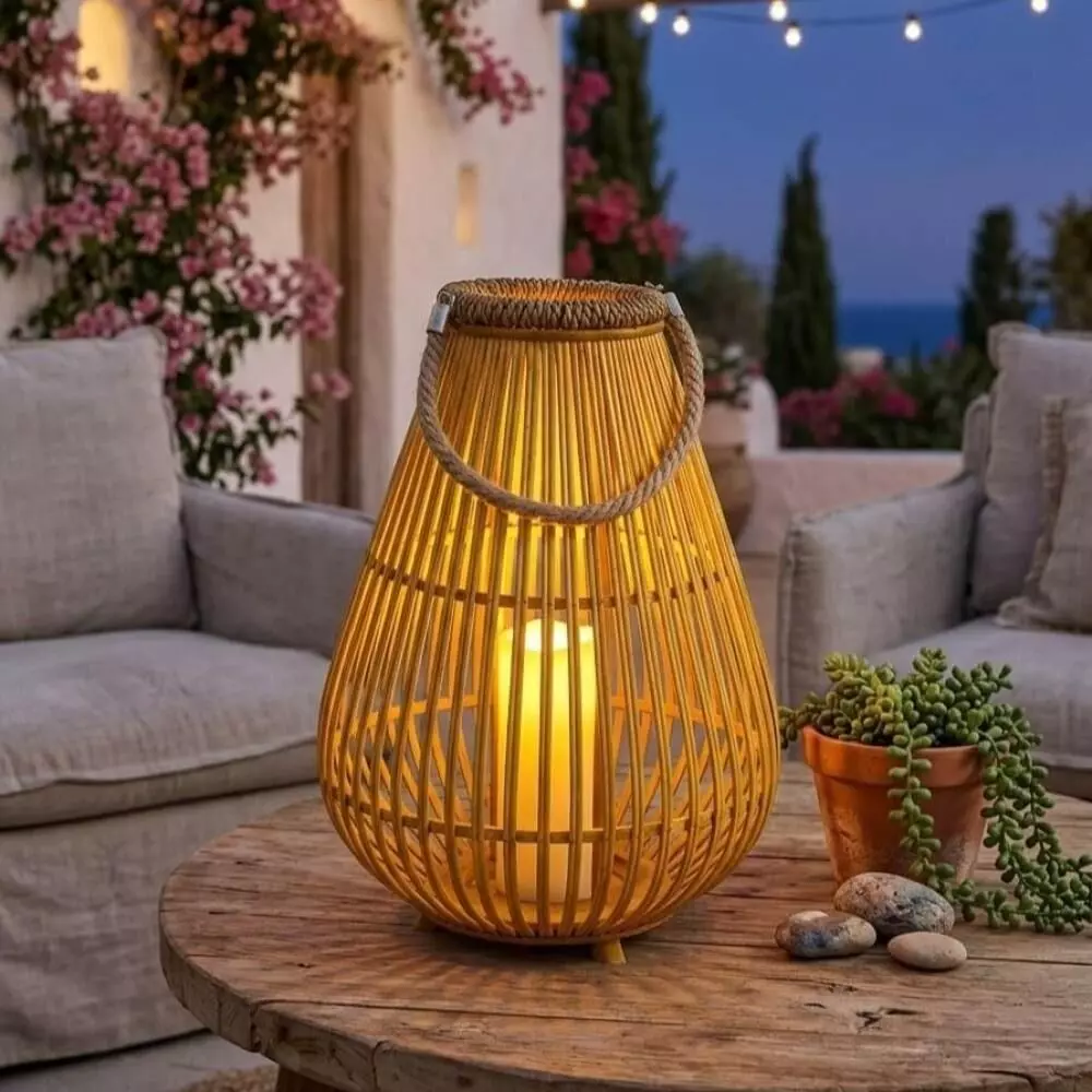 أضيفي لمسة دافئة وطبيعية إلى ديكور منزلك مع هذا الفانوس المصنوع يدويًا من الراتان ، بتصميم بوهيمي أنيق يعكس روح الحرفية والجمال البسيط.