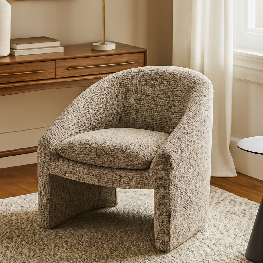 يمنح الكرسي مظهراً ناعماً وأنيقاً، مع ملمس لطيف يناسب مختلف أنواع الديكورات المنزلية أو المكتبية، ويضيف لمسة جمالية للمكان.تصميم عصري منحني: