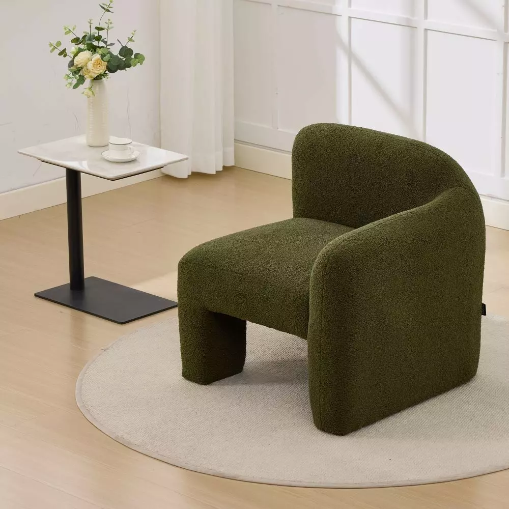 كرسي عصري بتصميم ناعم وانسيابي يضيف لمسة من الرقي والراحة لأي مساحة في المنزل. يأتي بلون أخضر هادئ يتناغم مع الأثاث العصري ويضيف لمسة من الحيوية لأي غرفة، مع جلسة مريحة وشكل منحني يوفّر دعماً جيداً للجسم. يناسب غرف الجلوس، غرف النوم أو أي زاوية استرخاء بفضل مظهره الأنيق وإحساسه المريح.