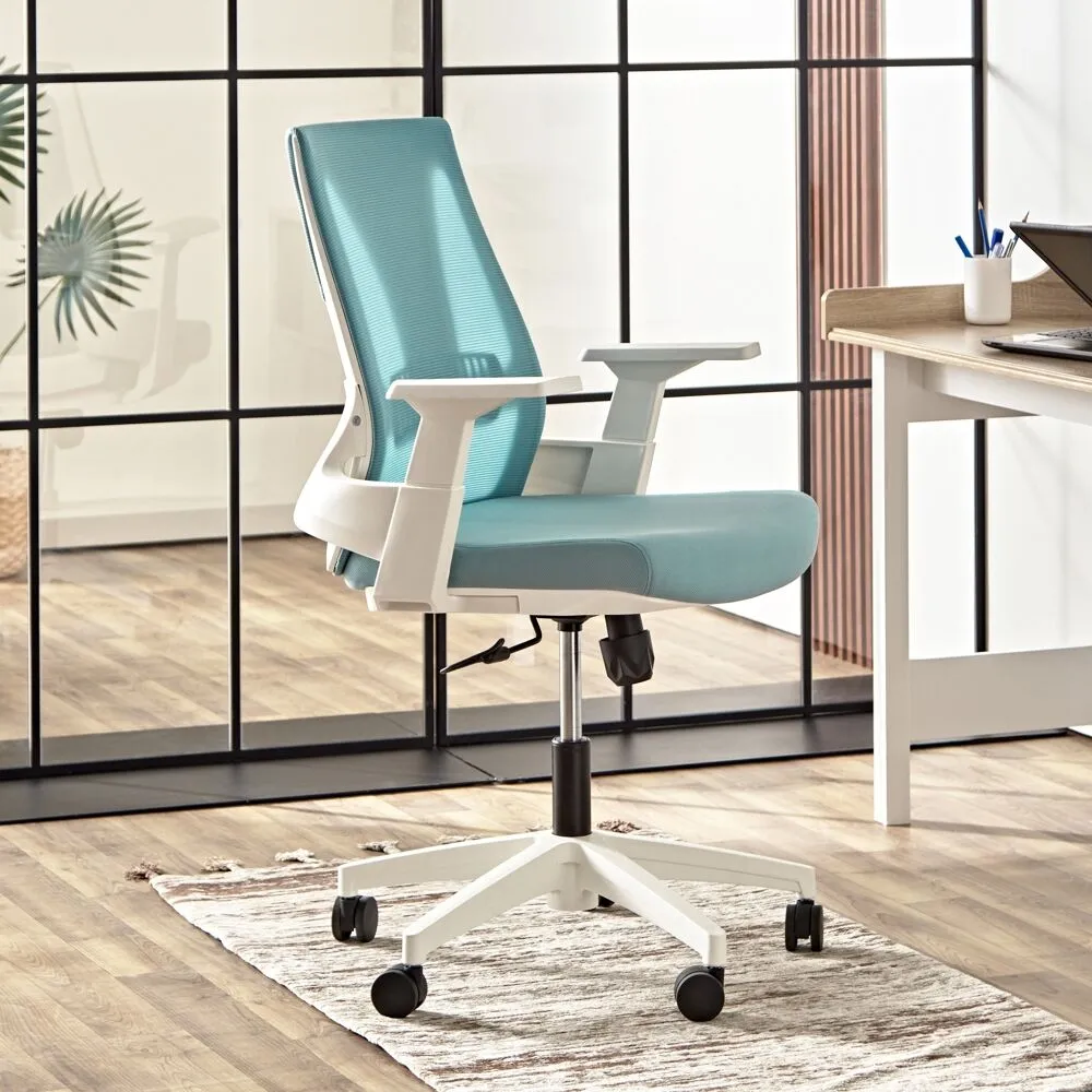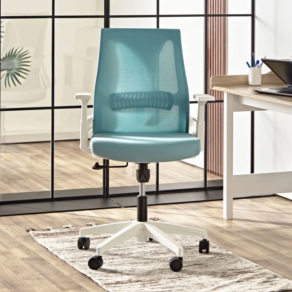 خيار مثالي للحصول على وضعية جلوس صحيحة خلال ساعات طويلة من العمل تتمثل في كرسي المكتب الأنيق هذا. منجد من مادة ذات جودة عالية ومجهز بآلية التمديد التي تعمل بسلاسة والتي تساعد في تعديل الارتفاع بشكل مريح. السمات الرئيسية هي مساند الذراعين الداعمة، الظهر المرتفع والمقعد المريح والعجلات الدوارة في القاعدة. كما أنه سهل العناية ومناسب للمكتب المنزلي أو مساحة الشركة.