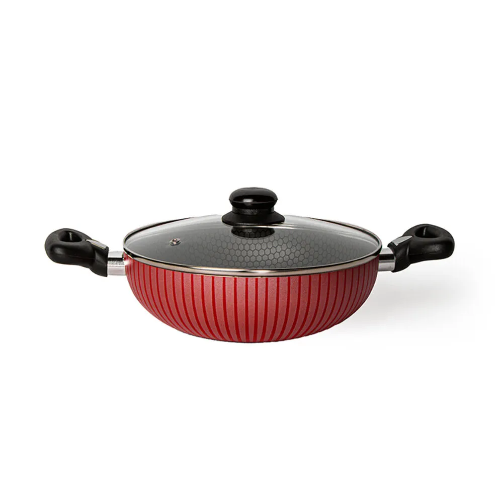 كسرولة غير لاصقة بغطاء زجاجي 24 سم