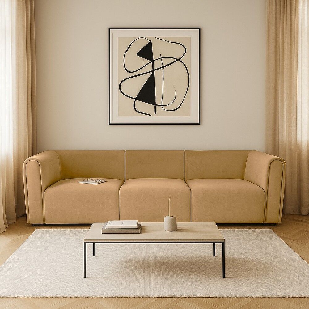 اللون البيج الجميل مع قماش المخمل يضفي لمسة من الفخامة على أي مساحة معيشة، مع تصميم مريح تصميم مريح مع ظهر مريح للجلوس الطويل يوفر تجربة جلوس استثنائية.الخامة: