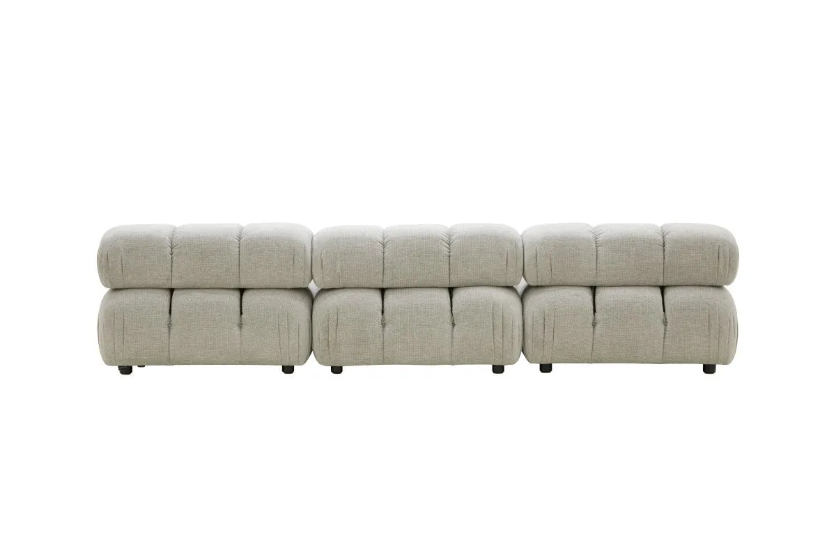 الإطار من الخشب الصلب والخشب الرقائقي . حشوة الكنبة من الفوم مع تنجيد خارجي من قماش البوكليه وقوائم مصنوعة من البلاستيك بارتفاع 5 سم .