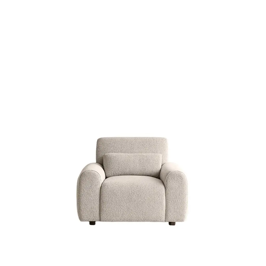 يغطي الكنبة قماش بوليستر ناعم وعصري، مصمم ليكون مقاومًا للبقع وسهل التنظيف. توفر هذه المادة مظهراً عصريًا وجمالاً دائمًا، بالإضافة إلى شعور بالراحة طوال الوقت.حشوة زنبرك وفوم: