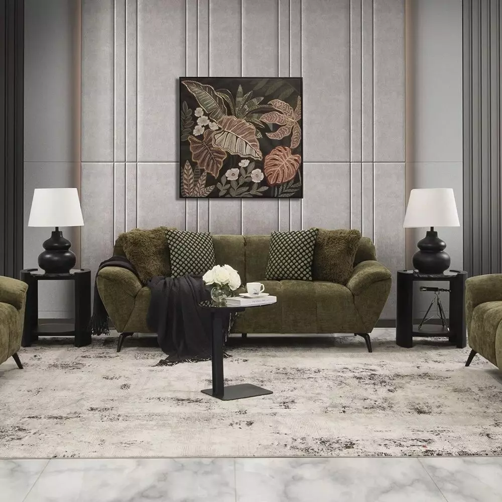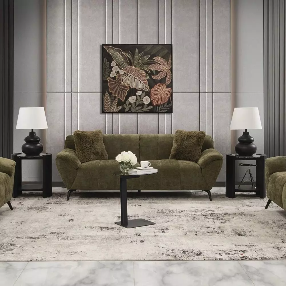 كنبة ثلاثة مقاعد بأيدي : عرض 212 - عمق 88 - ارتفاع 81 سم وسادة مربعة للديكور : عرض 45 - ارتفاع 45 سم |