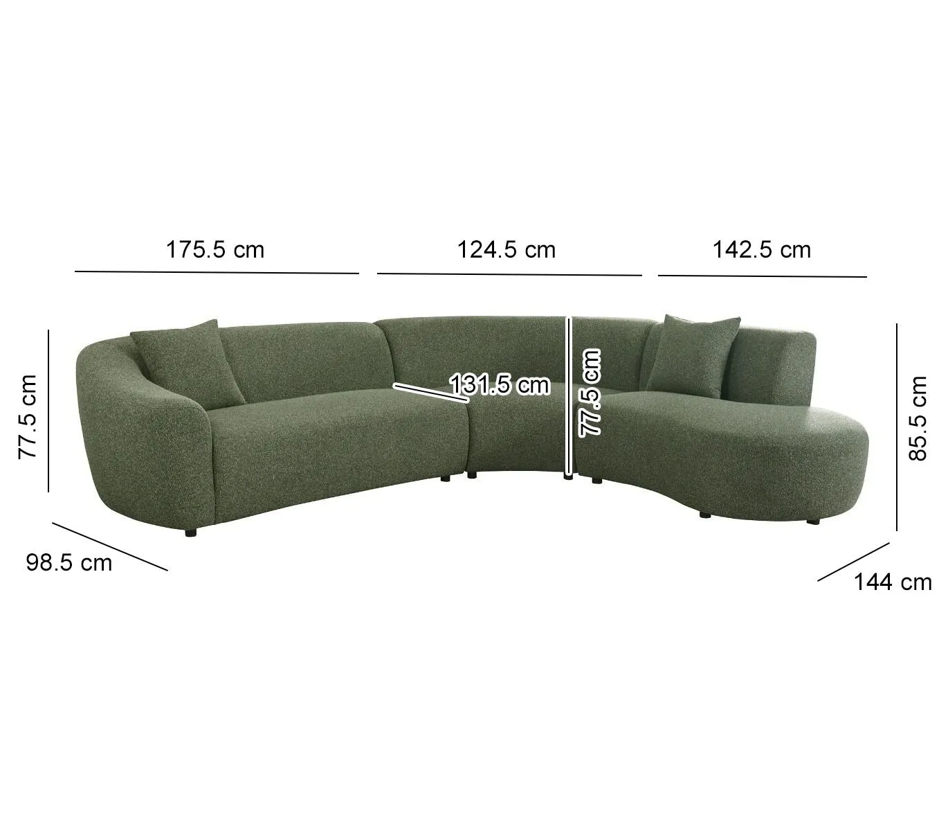 الكنبة الثلاثية : العرض 175 - العمق 98.5 - الارتفاع 77.5 كنبة الزاوية : العرض 124.5 - العمق 131.5 - الارتفاع 77.5 كنبة الاسترخاء : العرض 142.5 - العمق 144 - الارتفاع 85.5 |