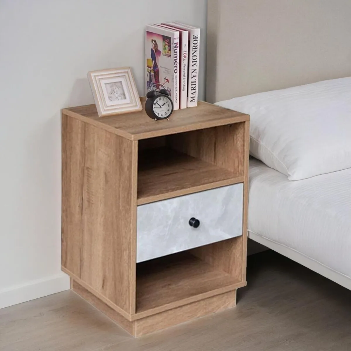 أنت تراجع:كومودينو درج ورفين روزيت - خشبي ورمادي