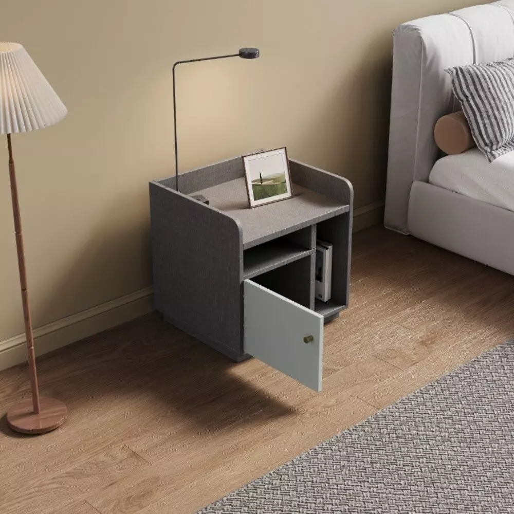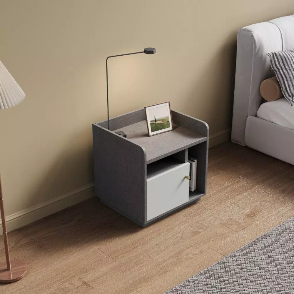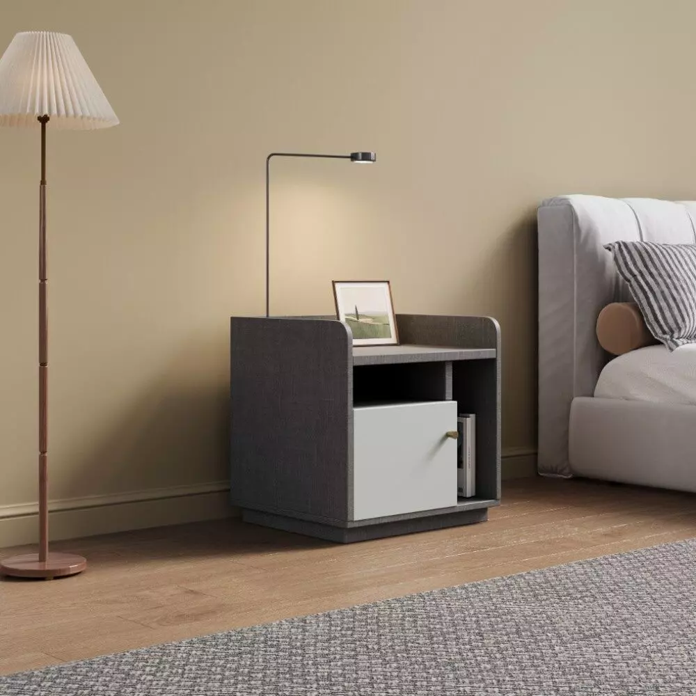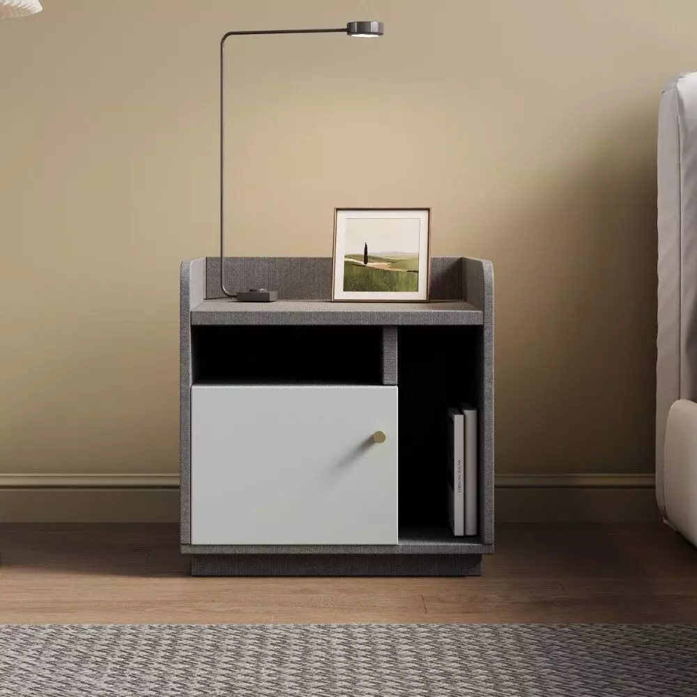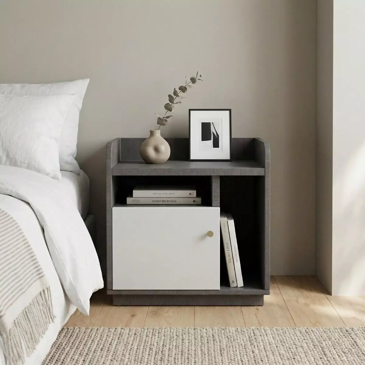 رمادي مع أبيض يمنحان الكومودينو مظهرًا عصريًا وهادئًا.