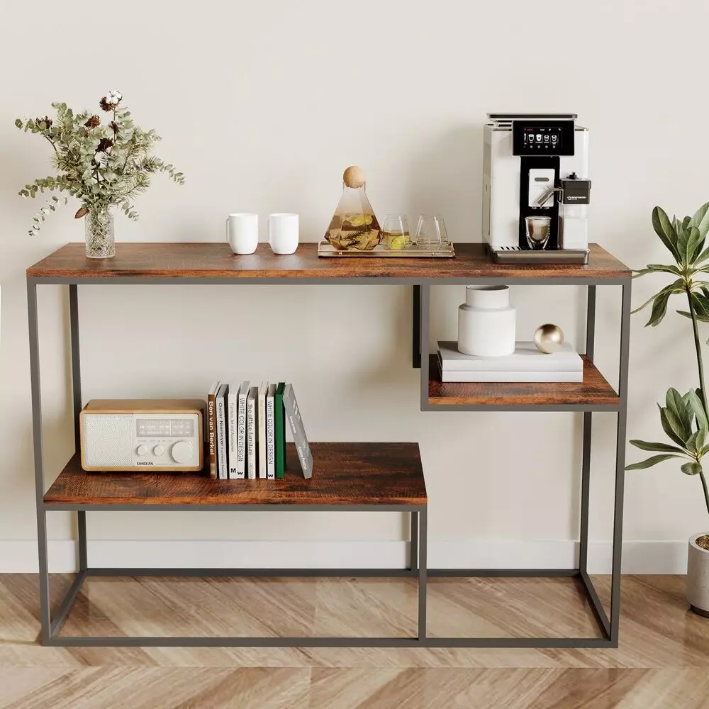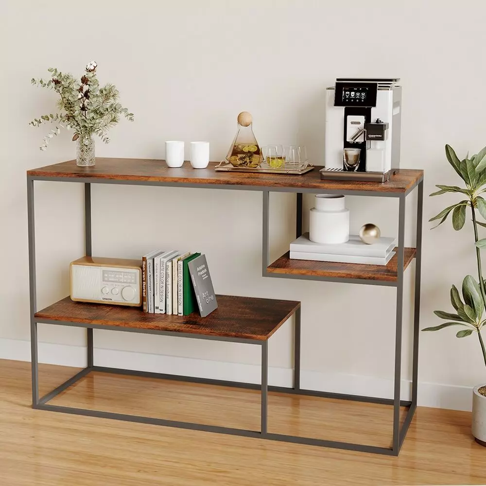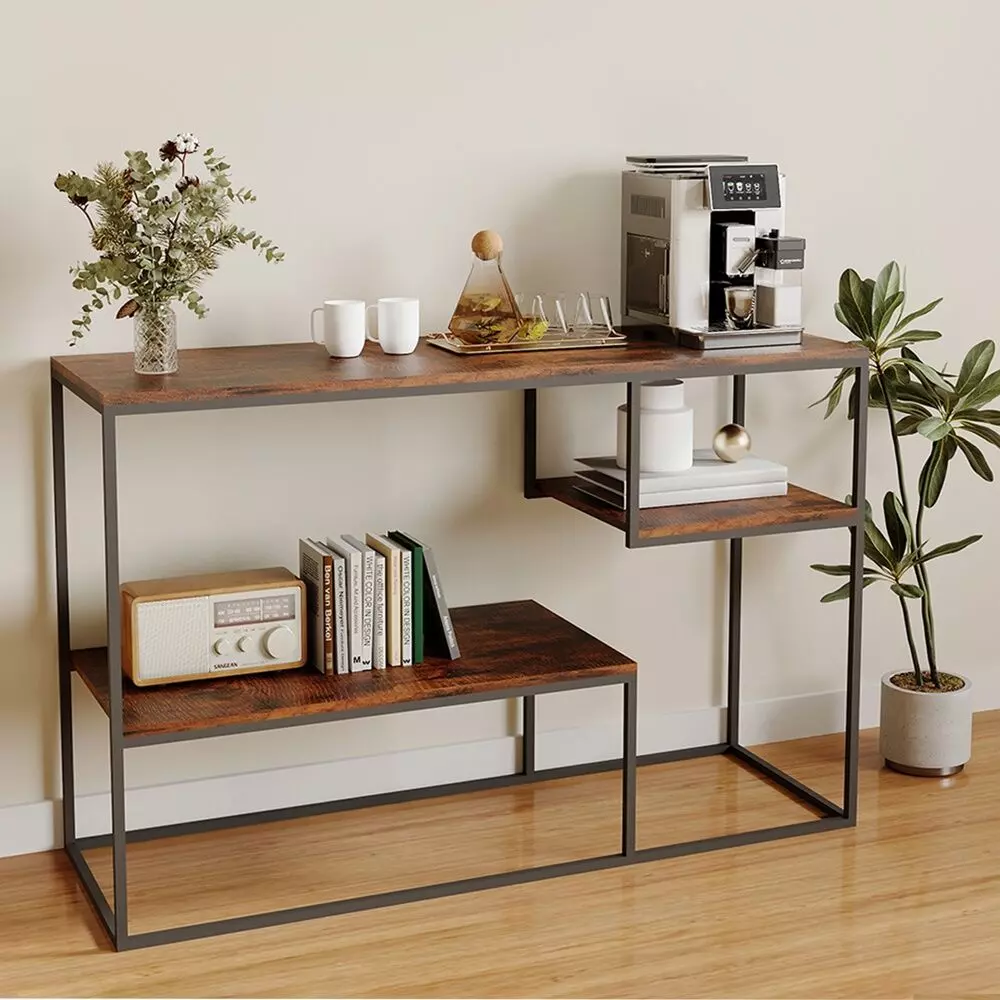 سطح الطاولة والأرفف الخشبية مصنوعة من خشب MDF عالي الجودة، مما يضمن استخدامًا طويل الأمد.