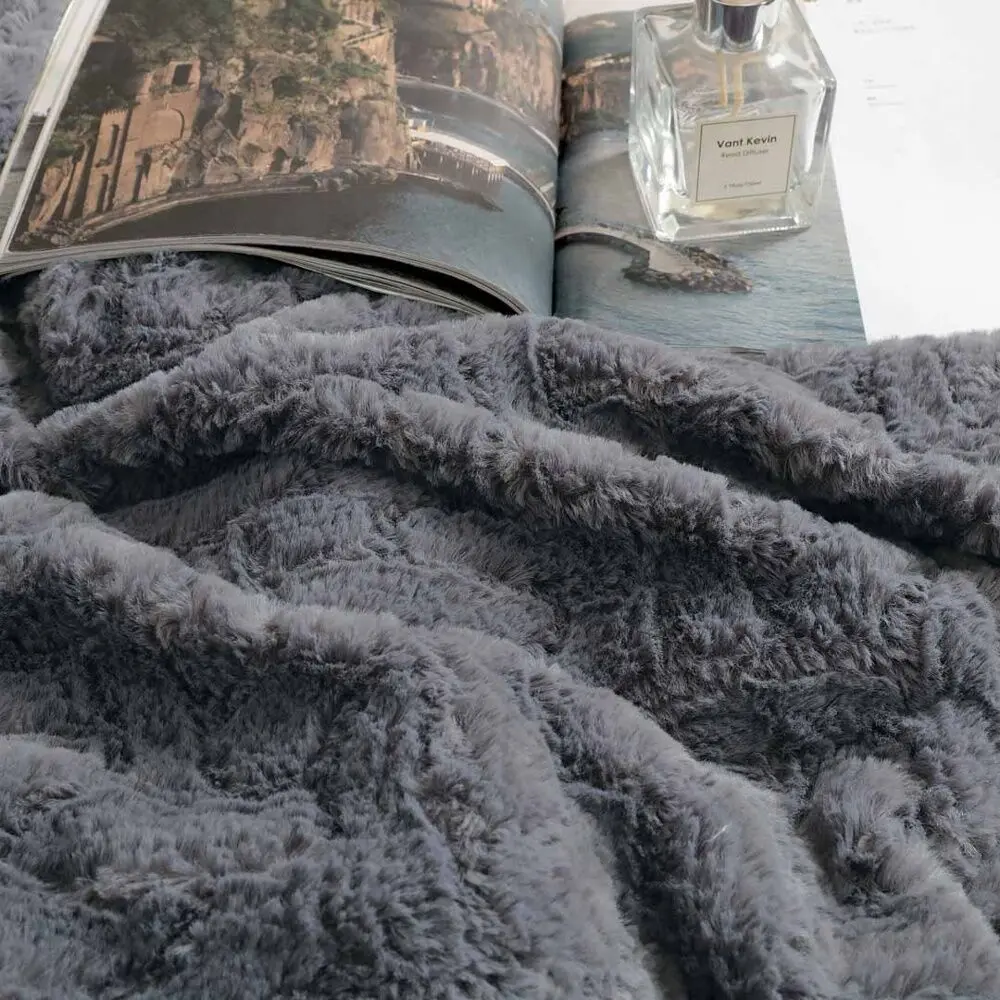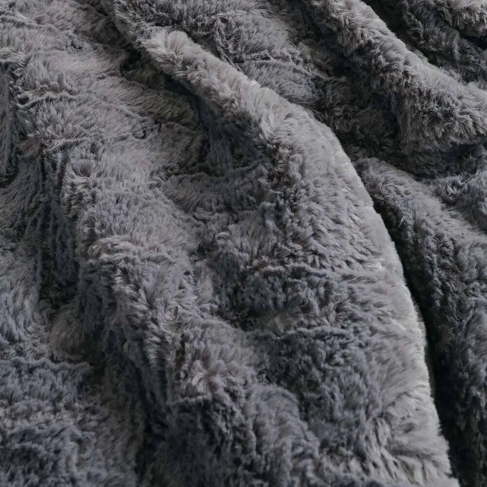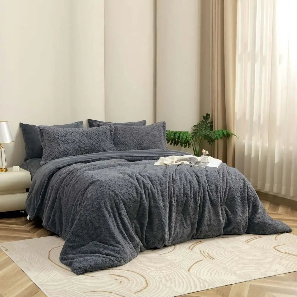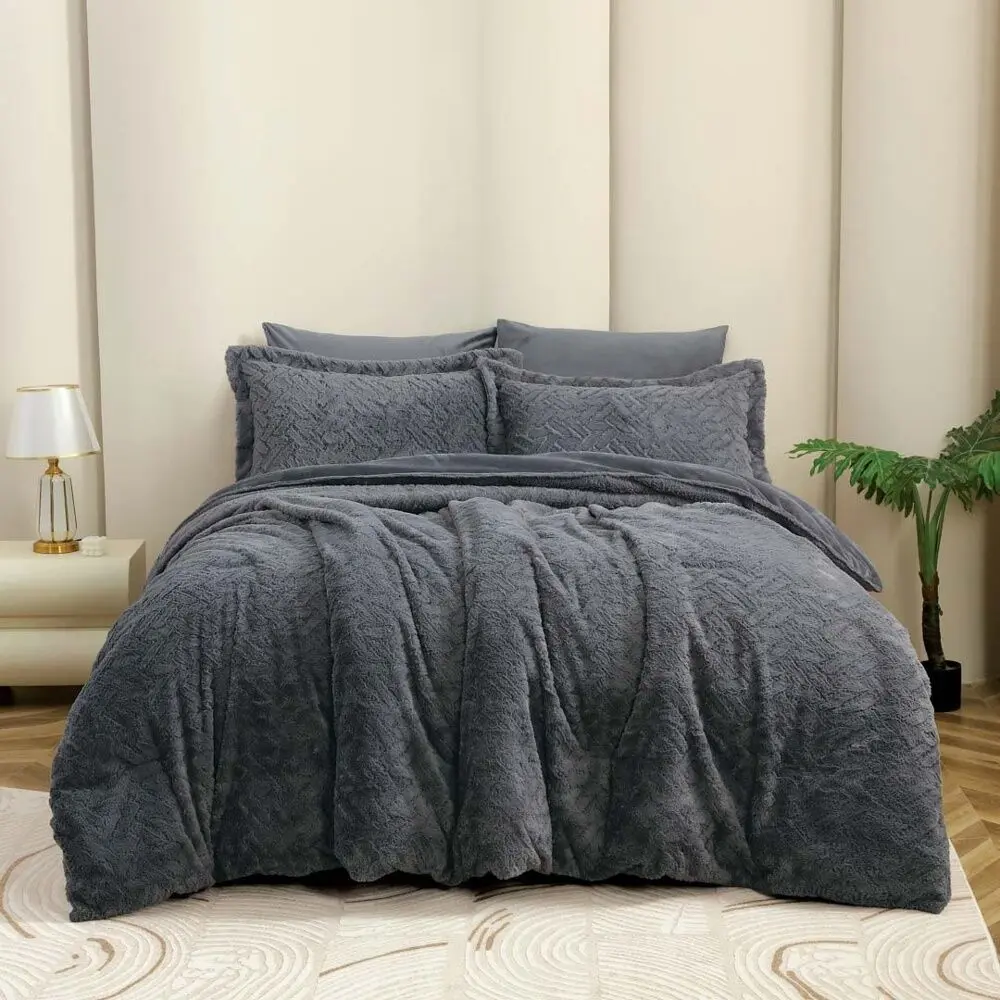 لحاف ستارز شتوي مزدوج مخمل وفرو - 6 قطع - رمادي غامق
