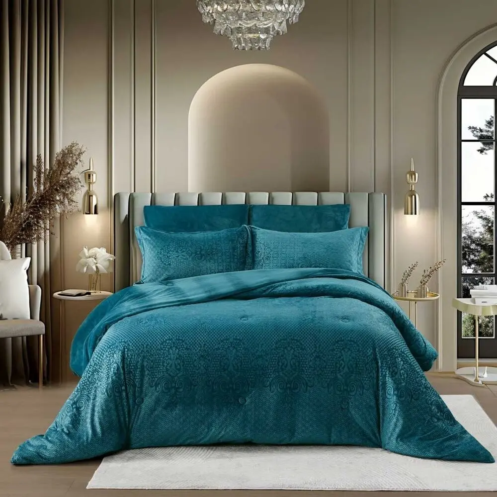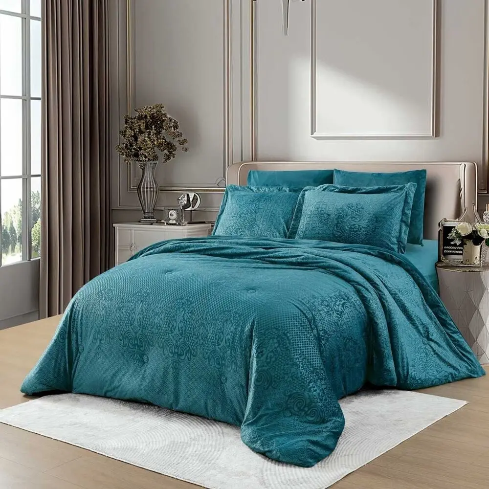 أنت تراجع:لحاف كوين شتوي نارنج 200x150 سم مخمل محفور - 4 قطع - تركواز