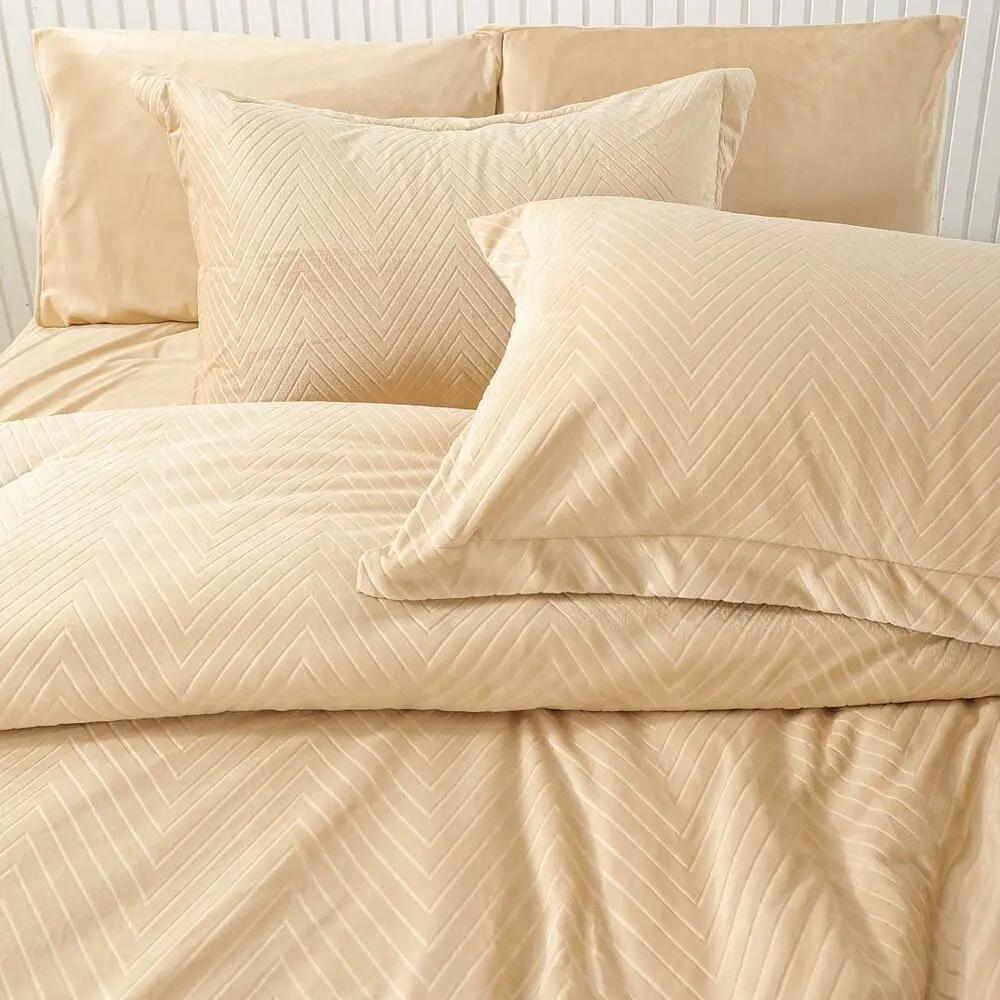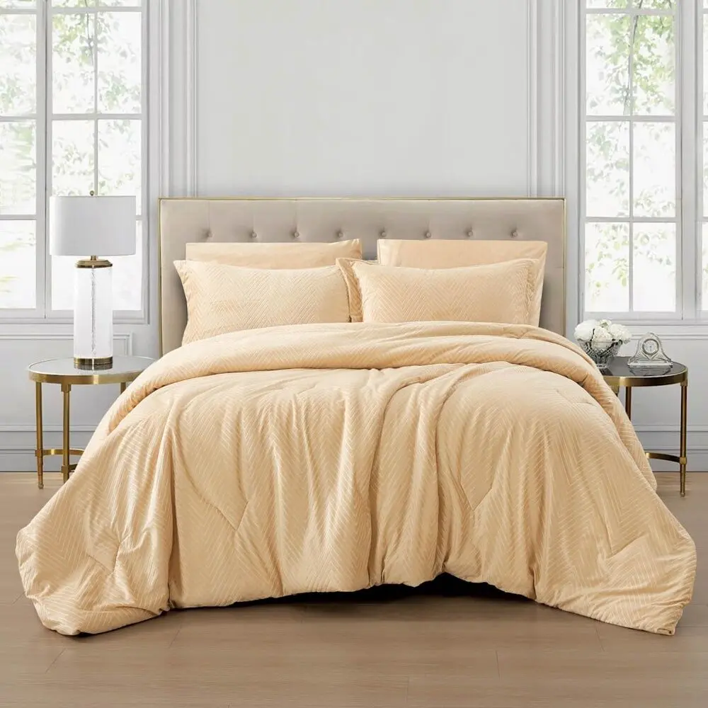 لحاف كوين شتوي 200x150 سم مخمل تولا - 4 قطع - بيج