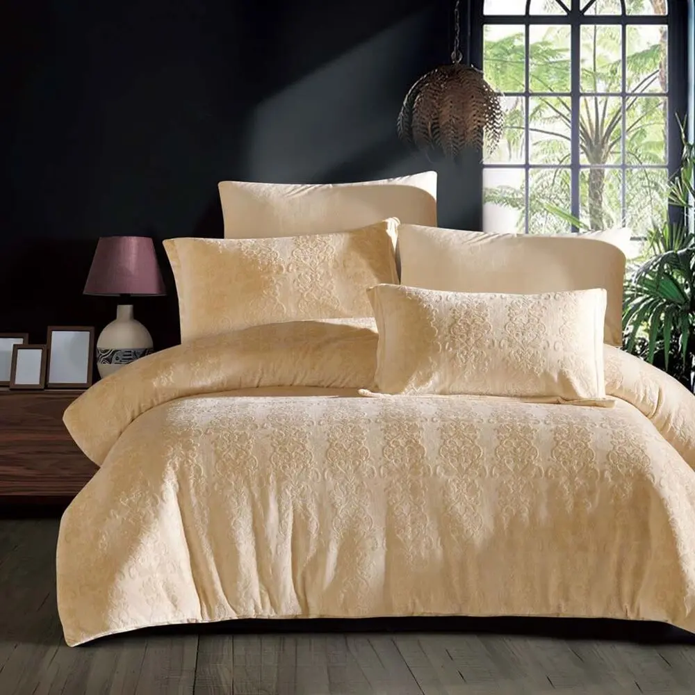 لحاف كيراما شتوي كوين 200x150 سم مخمل محفور - 4 قطع - بيج