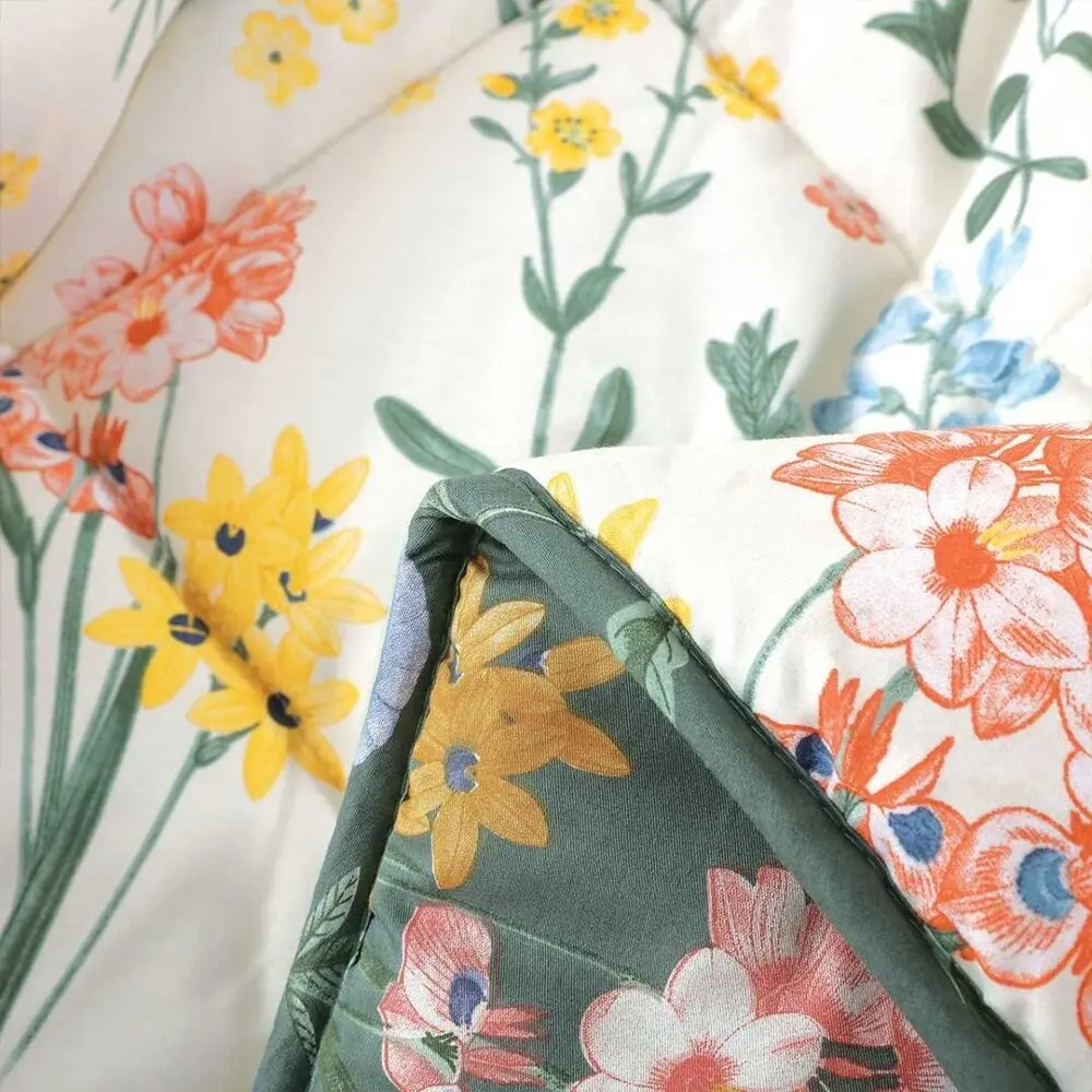 أنت تراجع:لحاف مفرد ونص صيفي سمرلاند برسومات الزهور - 4 قطع - كريمي