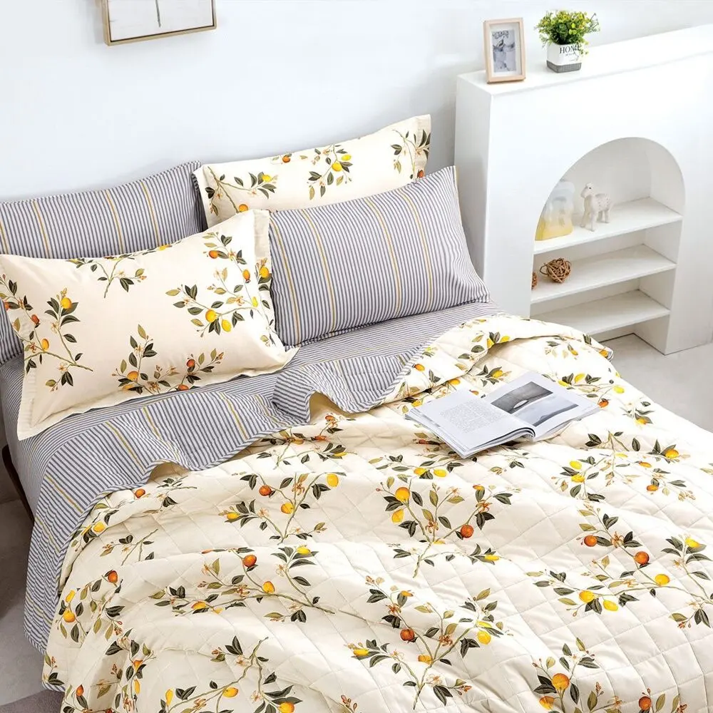 أنت تراجع:لحاف مفرد ونص صيفي سمرلاند خفيف مضغوط برسومات الزهور - 4 قطع - كريمي