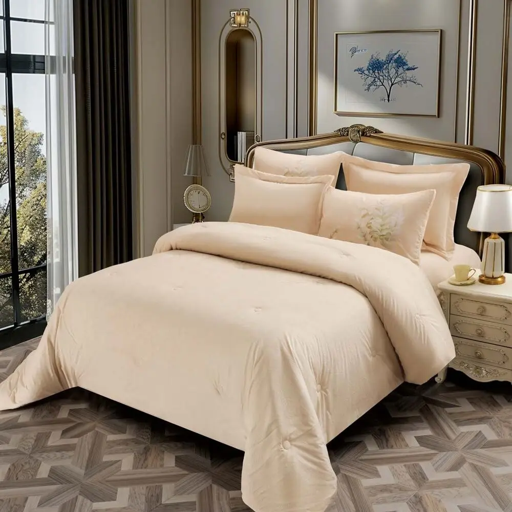 أنت تراجع:لحاف ميلاف شتوي مزدوج جاكارد مخمل وفرو - 6 قطع - كريمي