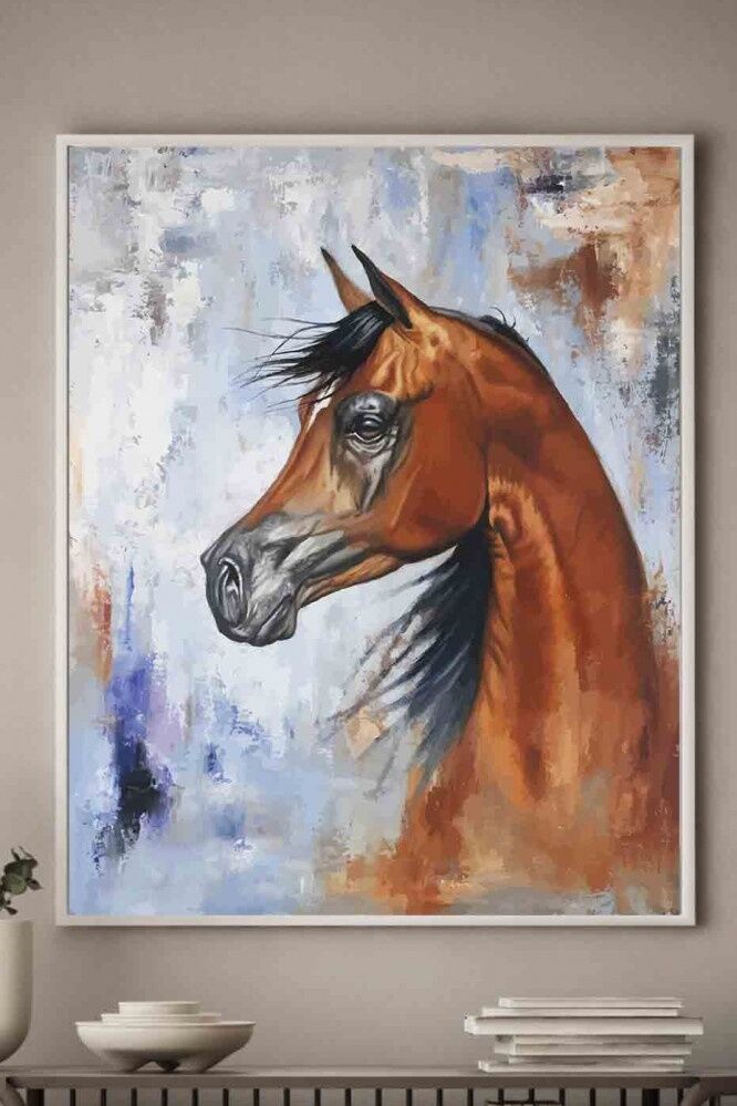 من احدث اللوحات الجدارية لخيل بخلفية داكنة مناسبة للمجالس والصالات والممرات اخترناها بفن ونصنعها بفن متوفرة بمقاسات متعددة قماش كانفس من اجود الانواع نصنع اللوحات بأحدث التقنيات العالية الدقة والوضوح