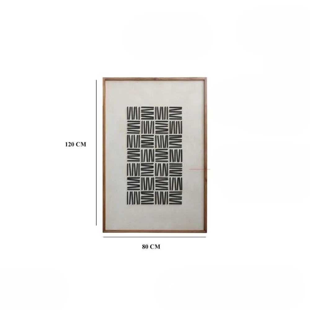 لوحة جدارية فنية معاصرة بتصميم تجريدي مميز، مصنوعة من أجود أنواع الخشب الطبيعي، مما يضفي عليها لمسة دافئة وعمقاً فريداً. تتميز اللوحة بتفاصيل مصممة بدقة عالية، حيث تتشكل قطع الخشب الصغيرة في أنماط متكررة ومتوازية تخلق إحساساً بالحركة والبعد البصري. يبرز جمال التصميم بإطار متين من الخشب الطبيعي، وتتوفر اللوحة بمقاس 120*80 سم، مما يجعلها قطعة فنية آسرة ومثالية لإضفاء طابع شخصي وأنيق على أي مساحة داخلية.