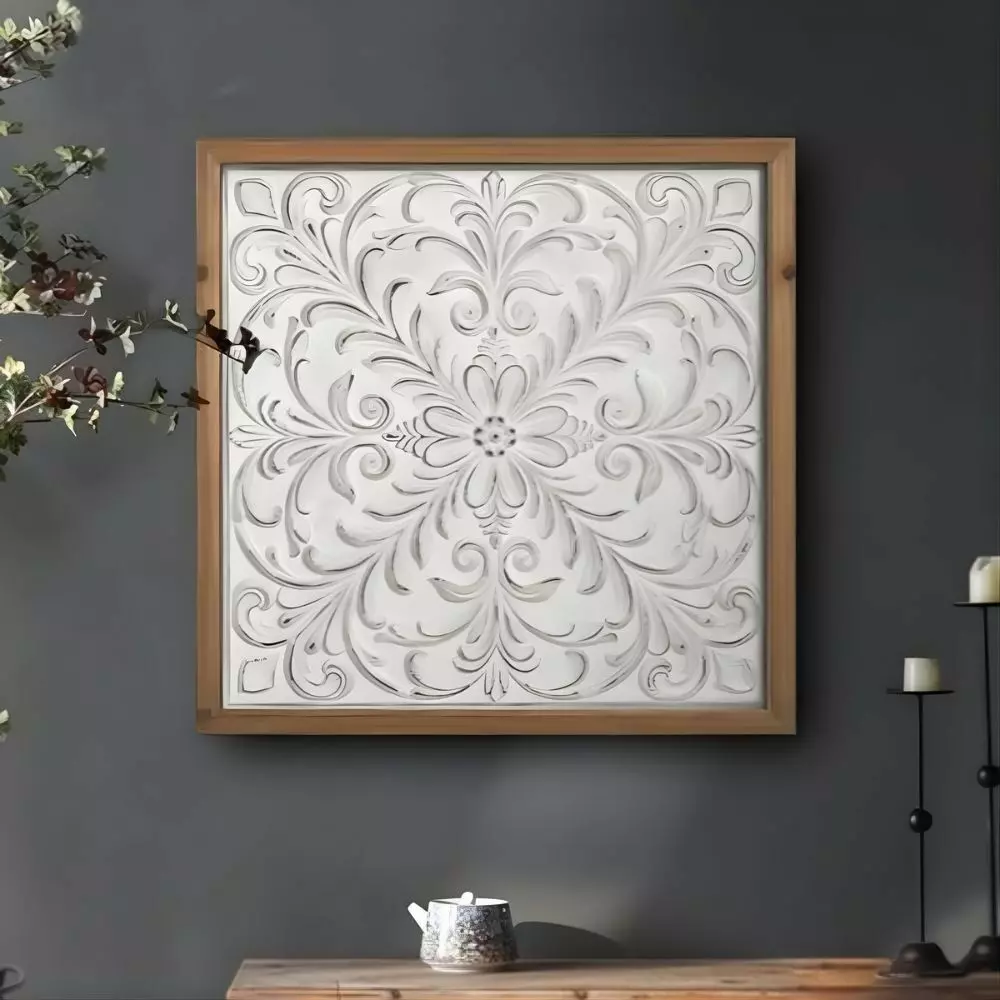 لوحة جدارية هولتر 57x57 سم زيني جدران منزلك مع هذه اللوحة الجدارية المميزة التي تجمع بين نقش الحديد الأنيق والإطار الخشبي الراقي. تصميمها الفريد يمنح المكان لمسة فنية وجمالية، حيث يضيف الحديد المنقوش تفاصيل معقدة تعكس الذوق الرفيع، بينما يوفر الإطار الخشبي إحساساً بالدفء والطابع الطبيعي. مثالية لأي غرفة، هذه اللوحة تمنح المكان لمسة من الفخامة والأصالة.