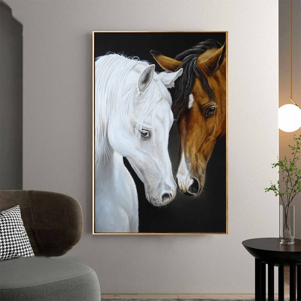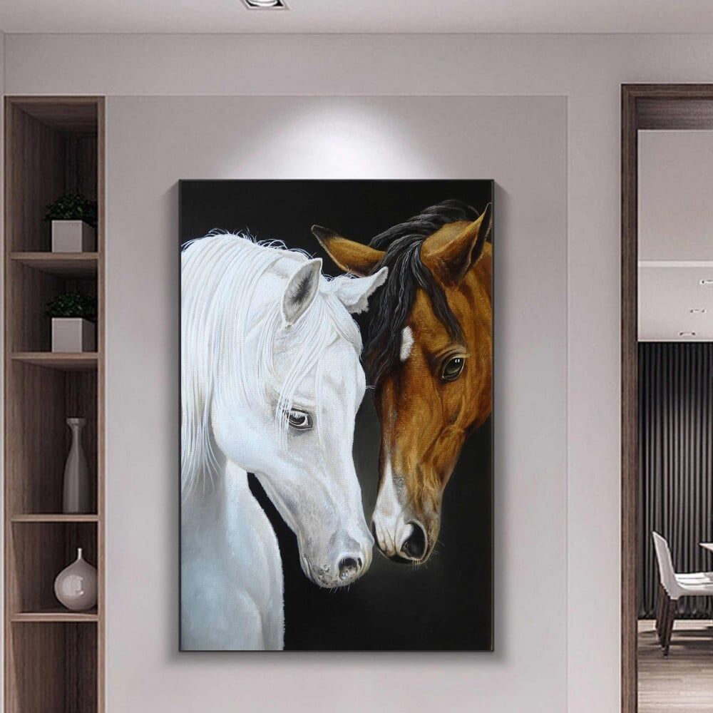 لوحة جدارية لخيل عربي ابيض بخلفية بيضاء تناسب الكثير من انواع ديكورات المنزل