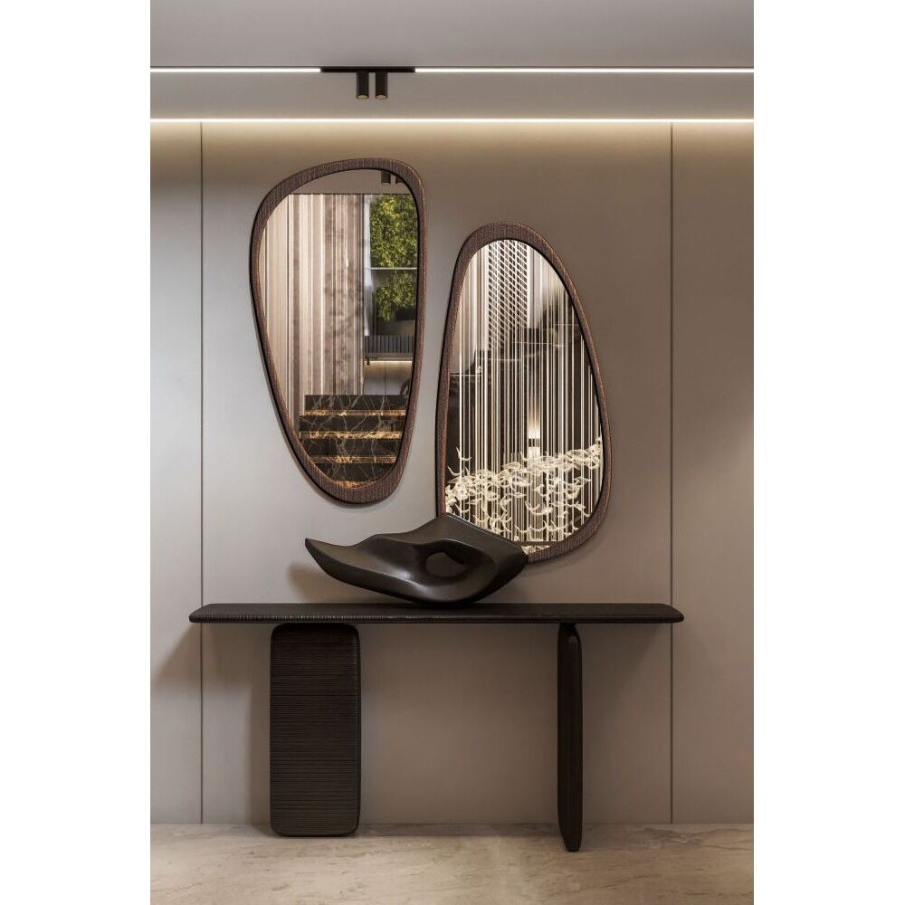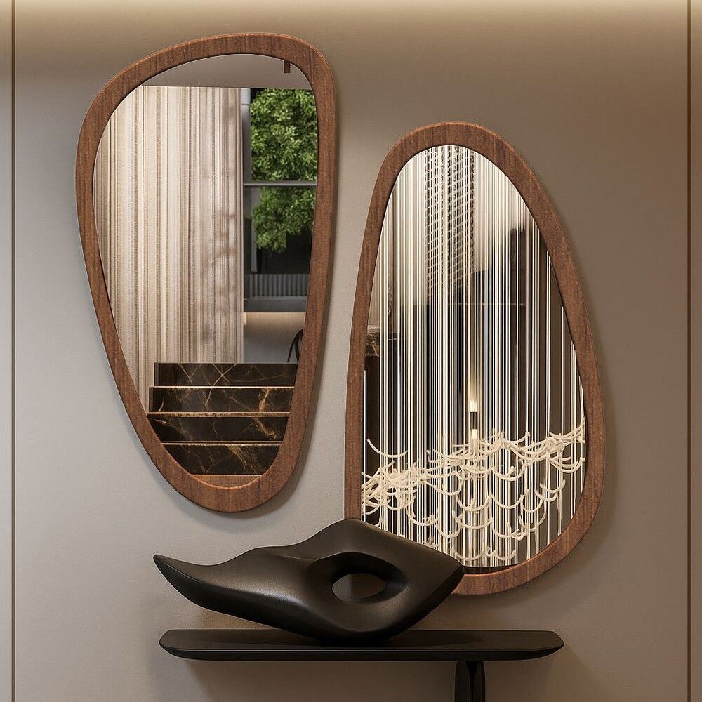 مرآة جدارية بتصميم عصري وأنيق تضيف لمسة من الجمال لأي مساحة. تتميز بحواف ناعمة وعصرية، مما يجعلها مثالية لتكملة ديكور غرف المعيشة، الحمام، أو المدخل. تعكس الضوء بشكل رائع وتخلق إحساسًا بالاتساع والراحة. مع مرآة جدارية مثل هذه، يمكنك إضافة لمسة فاخرة ومشرقة لبيتك دون عناء. تناسب جميع الأذواق وتُعد إضافة مميزة لأي زاوية من زوايا منزلك.