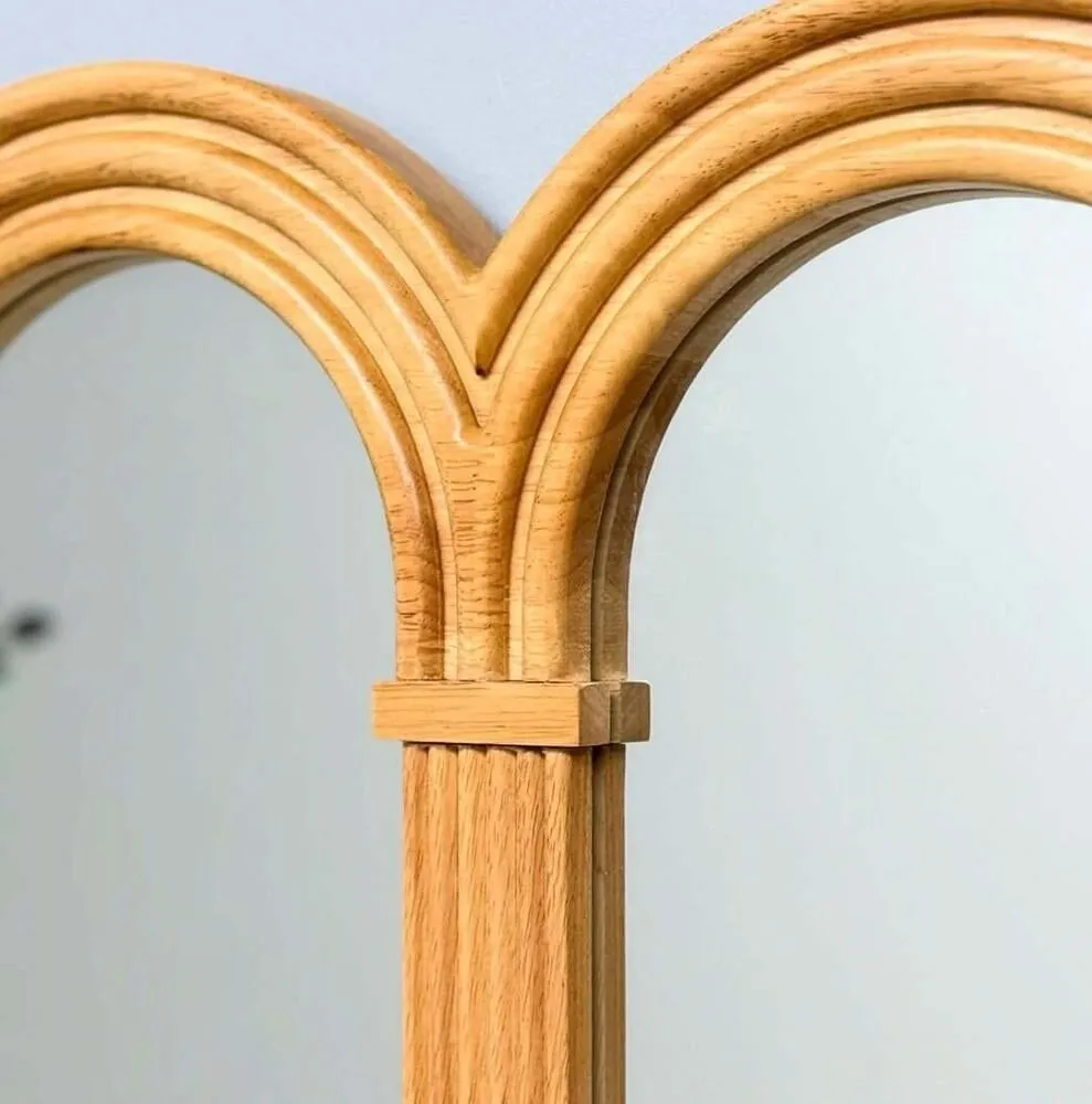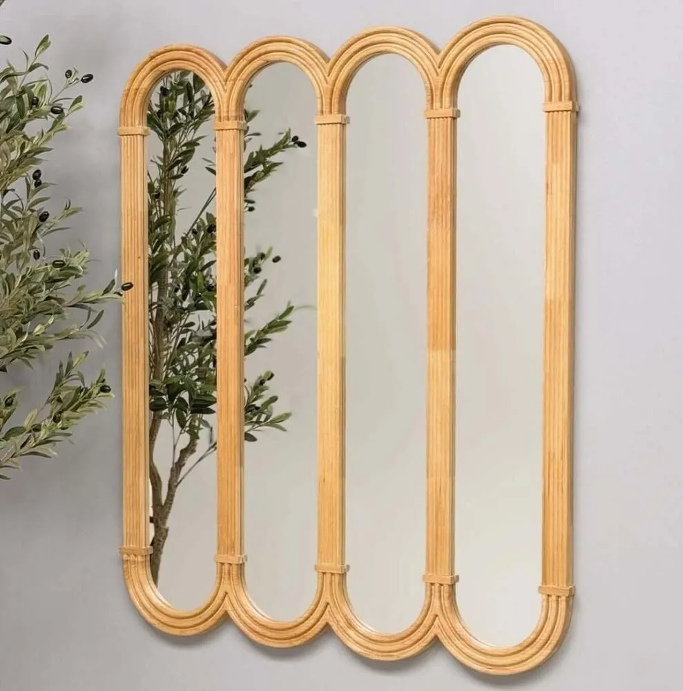 لمسة فنية بطابع ريفي عصري حوّل أي زاوية في منزلك إلى مساحة أنيقة ومشرقة مع مرآة ميرو الخشبية ذات التصميم الفريد والمقوّس. هذه المرآة ليست مجرد قطعة وظيفية، بل هي عنصر ديكوري يلفت الأنظار ويعزز من جمالية المكان. تصميمها المستوحى من الأقواس الناعمة يضيف لمسة هادئة ومتناغمة تنسجم مع مختلف أنماط الديكور سواء البوهيمي، الريفي أو المودرن. إطار خشبي طبيعي بلون رملي دافئ يمنحك إحساسًا بالدفء والراحة مثالية للمداخل، غرف النوم، الصالات أو زوايا التصوير تضيف عمقًا بصريًا وتساعد على توسيع المساحة بصريًا تصميم مقسم إلى أربعة أقواس يمنحها طابعًا هندسيًا أنيقًا سواء كنت تبحث عن قطعة ديكور فريدة، أو طريقة لتجديد روح منزلك، فإن ميرو هي الخيار الأمثل لمن يعشق التفاصيل الخشبية الدافئة واللمسات الفنية المبهرة.