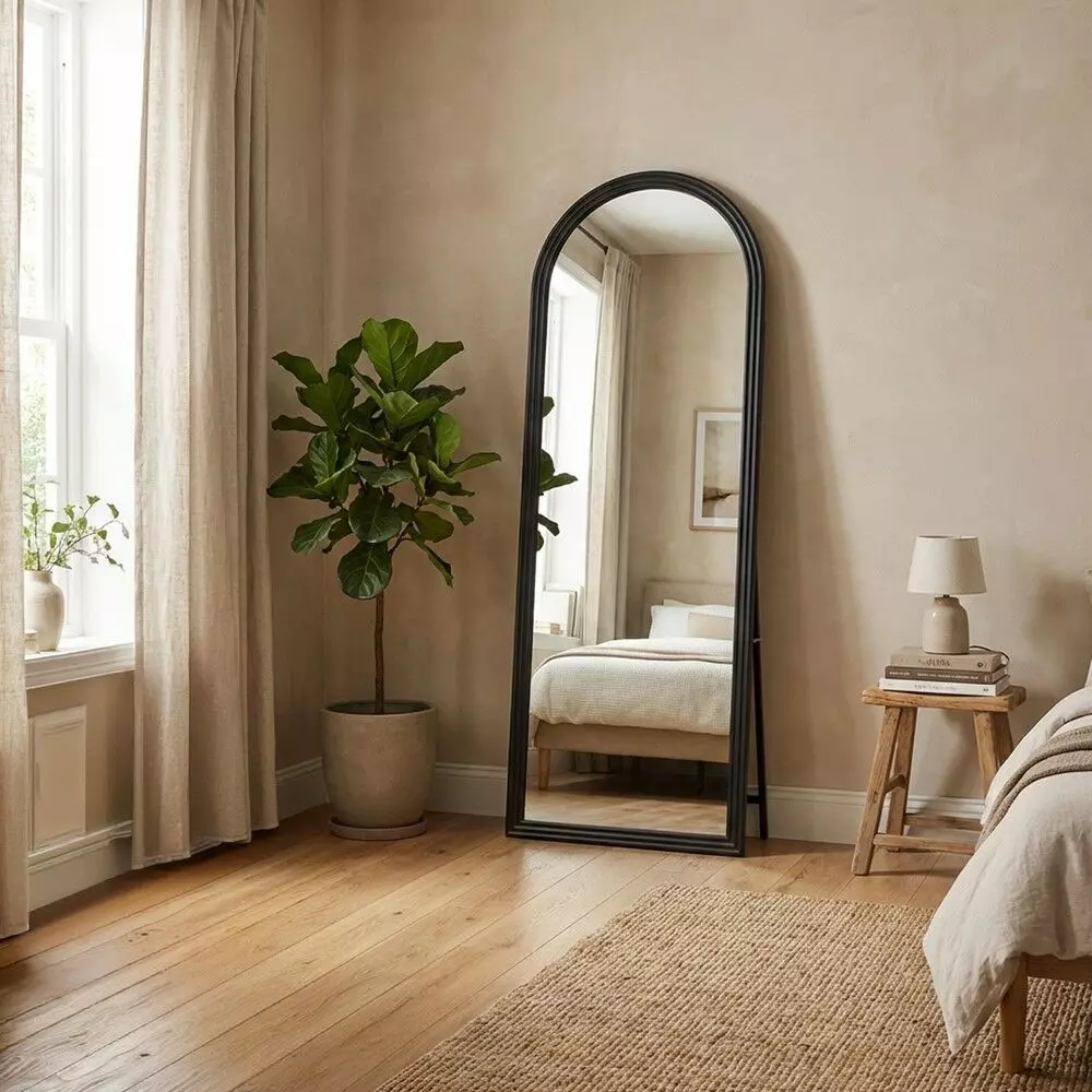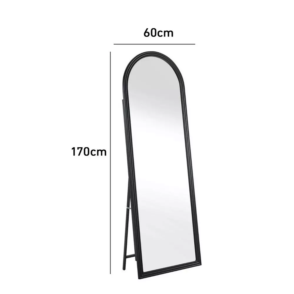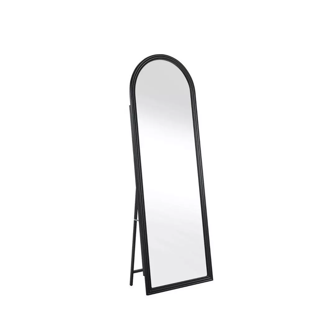 مرآة ستاند إطار خشب روزا لون اسود فخم بتصميم عصري وعملي، تمنحك إطلالة كاملة وواضحة من الرأس حتى القدم.