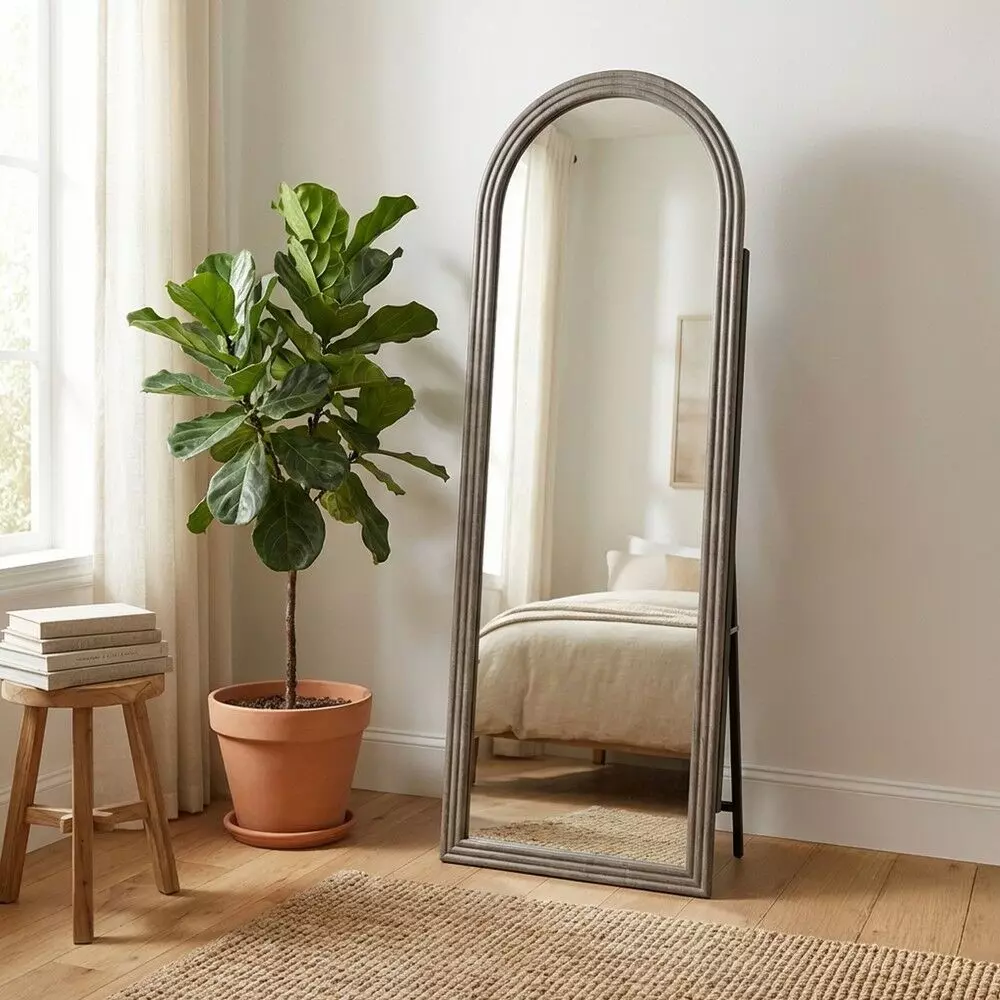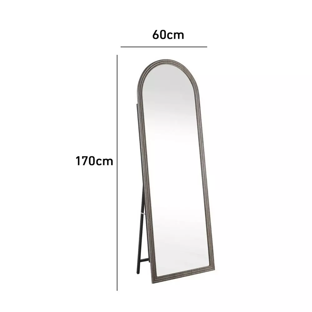 مرآة ستاند إطار خشب روزا لون رمادي انيق بتصميم عصري وعملي، تمنحك إطلالة كاملة وواضحة من الرأس حتى القدم.