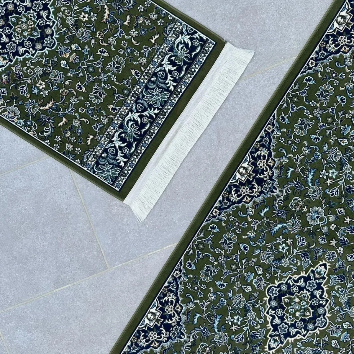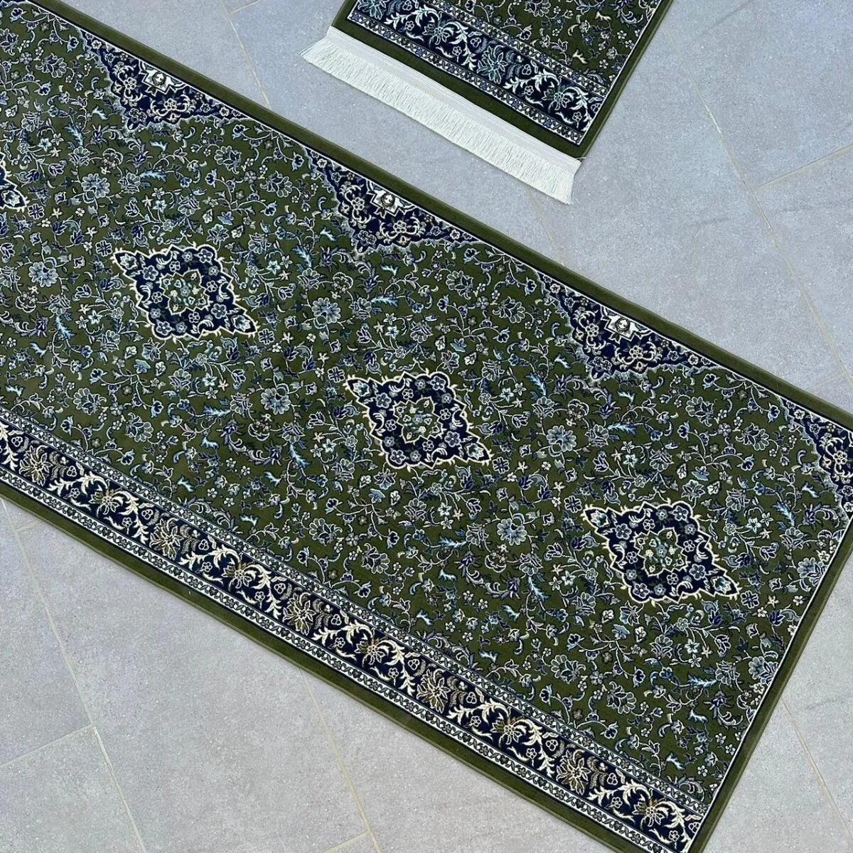 مصلى الروضة مستوحى من الروضة الشريفة، بتصميم فاخر وخامة عالية، مصلى متنقل يسع لخمسة مصلين، مثالي كـ مصلى رجال أو نساء ، مناسب للمنزل أو الرحلات مقاس 250×110 سم.