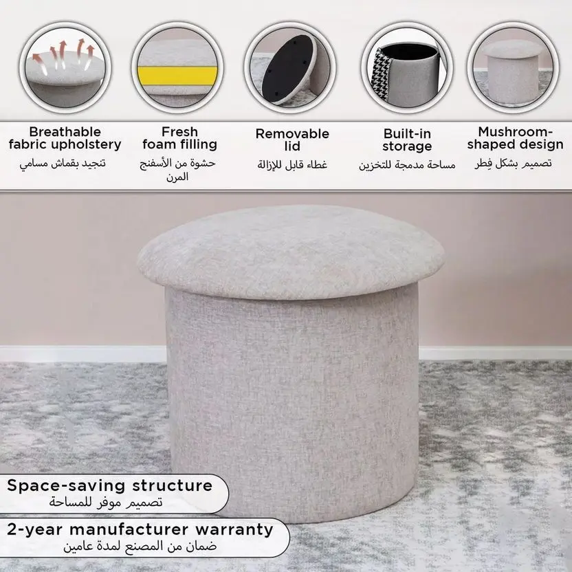 يُعد هذا المقعد إضافة عملية وأنيقة لأي مساحة معيشة. يتميز بتنجيد من القماش عالي الجودة بلون محايد، مما يجعله قطعة متعددة الاستخدامات تكمل أنماط الديكور الداخلي المختلفة. يسمح تصميمه المدمج له بالتناسب بسلاسة مع مناطق مختلفة من منزلك، سواء تم استخدامه كمسند للقدمين أو مقعد إضافي أو طاولة قهوة مع صينية في الأعلى.تُستخدم صور المنتج المرفقة في أغراض التوضيح والتمثيل فقط.قد يختلف لون المنتج قليلاً بسبب مصادر الإضاءة الفوتوغرافية أو إعدادات الشاشة/شاشتك.