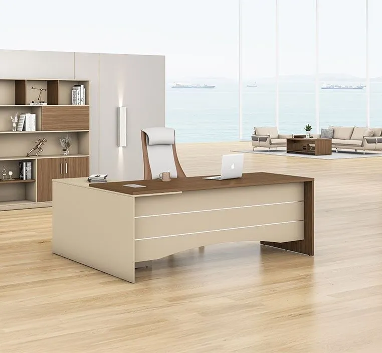 تم تصنيع المكتب باستخدام لوح خشبي صديق للبيئة مع تشطيب ميلامين مستورد لضمان مقاومة الخدوش والتآكل. يتميز المكتب بحواف بي في سي متينة بسُمك 2 ملم على السطح العلوي و1.2 ملم على الجوانب. السطح العلوي بسمك 25 ملم يمنح المكتب متانة فائقة تجعله مثاليًا للاستخدام اليومي المكثف.