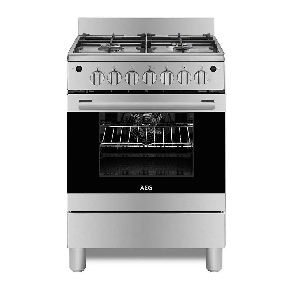 موقد غاز أيه إي جي 60 سم فري ستاند مع 4 شعلات وفرن بسعة 71 لتر - ستانلس ستيل