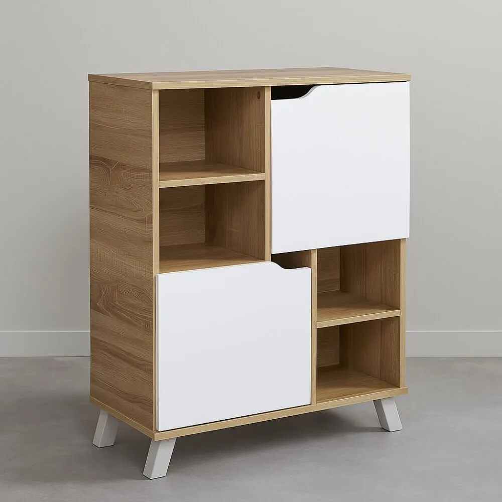 وحدة تخزين كورتني - أدراج ورفوف لون خشبي وأبيض خشب ماليزي