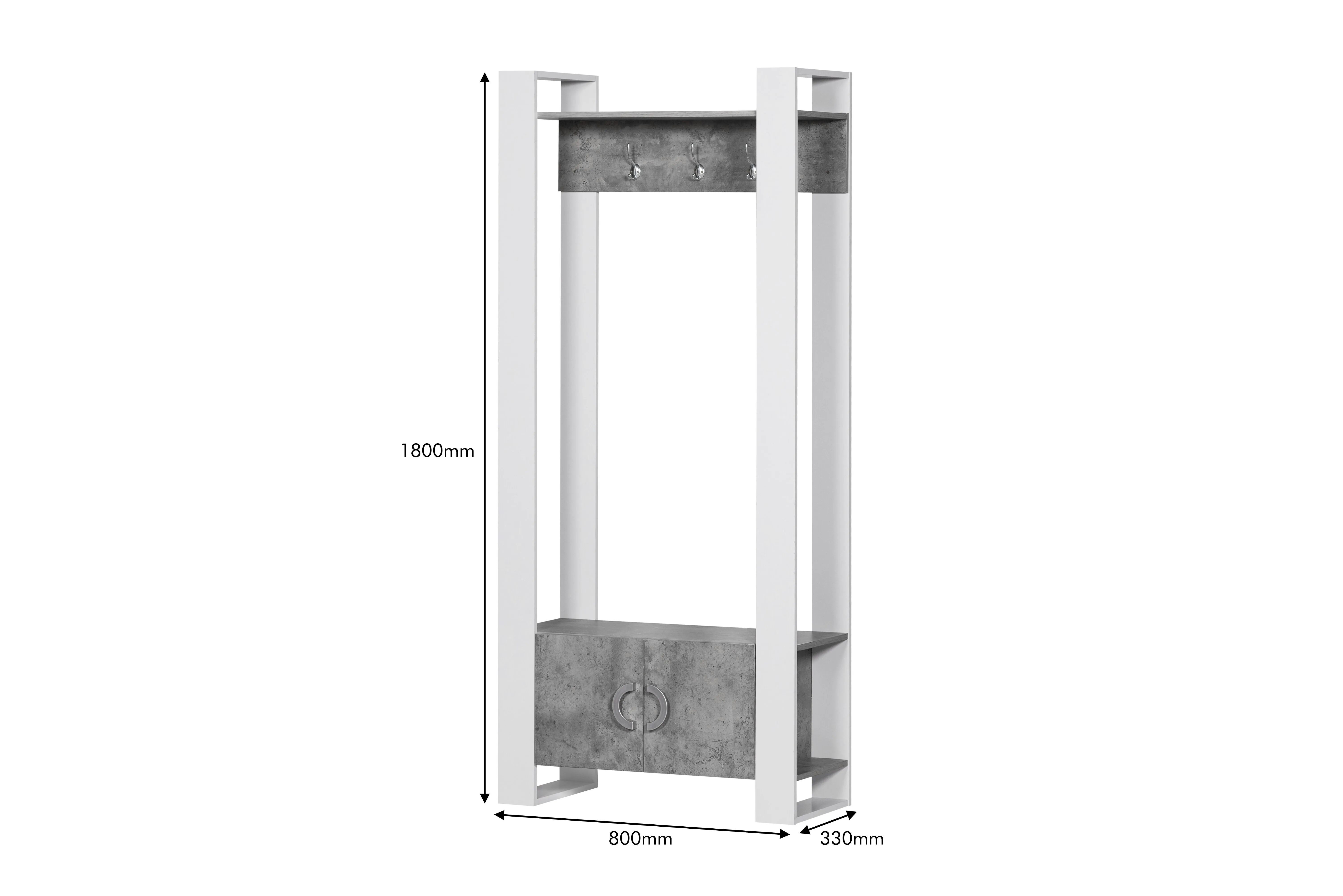 وحدة تخزين مدخل رفوف وأدراج وتعاليق فاسيلي ابيض ورمادي