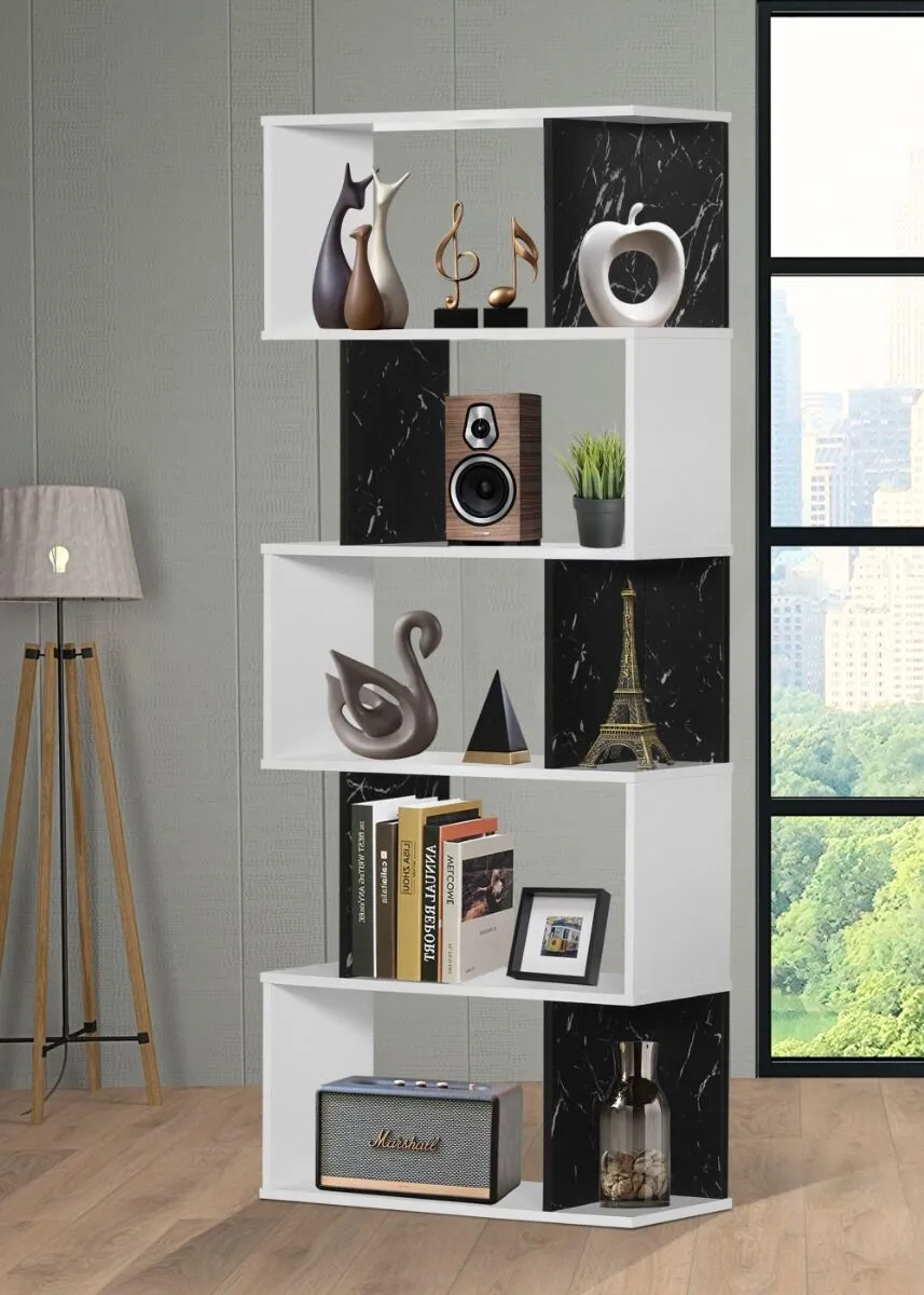 وحدة رفوف 5 دور أديما - لون أبيض وأسود