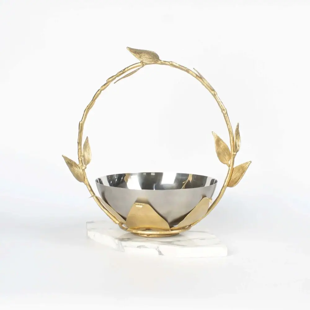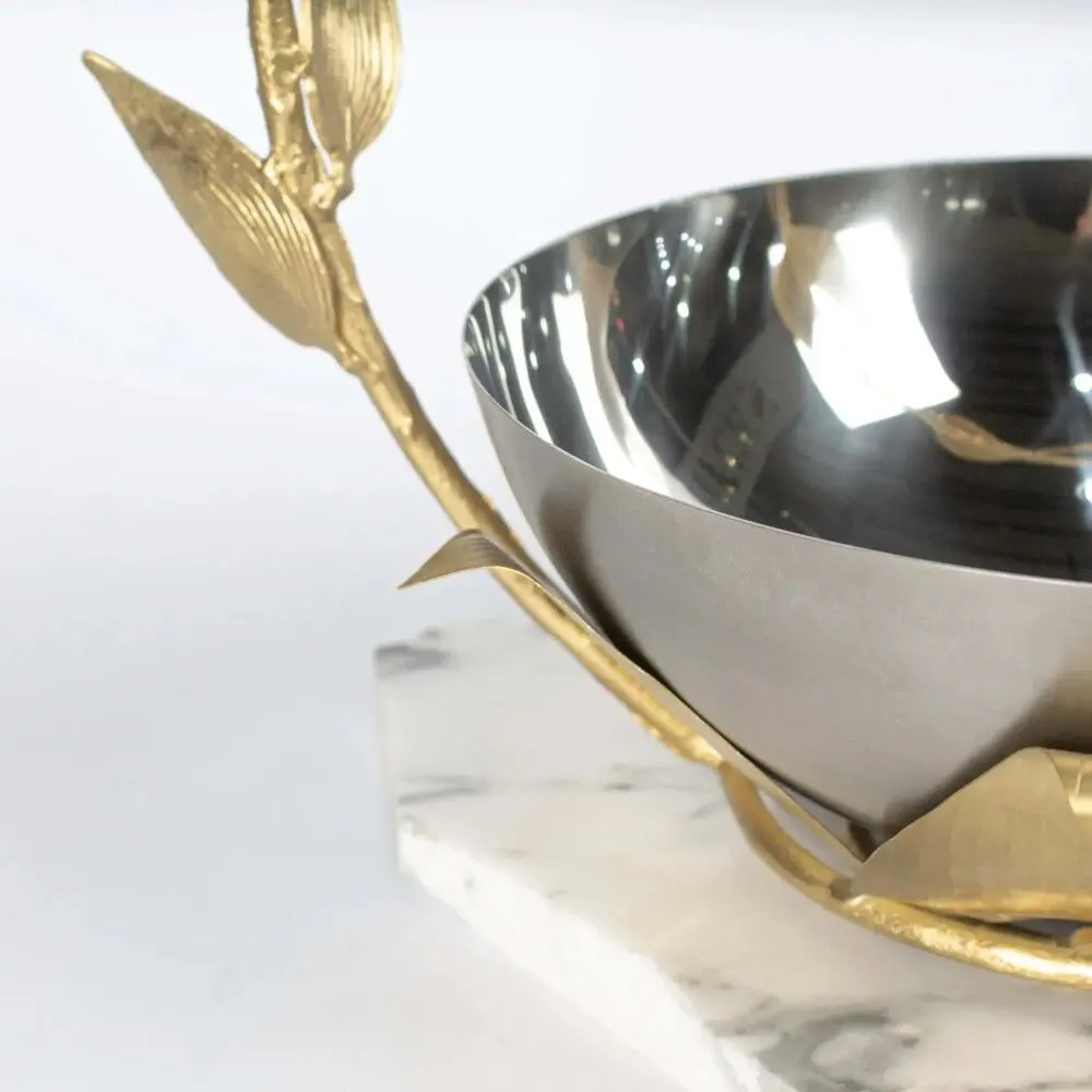 وعاء الزنبق مستوحاة من جمال زهرة الزنبق، بتصميم معماري منحني يميّزها بتفرده ويعكس إحساسًا بالأناقة والنقاء. مصنوعة من النحاس والفولاذ المقاوم للصدأ لتجمع بين المتانة والجمال، وتتميز بتشطيب أنيق بألوان النحاس المطفي والفضي اللامع والفضي المطفي، ما يجعلها قطعة مثالية للتقديم أو كعنصر ديكوري راقٍ ينسجم مع مختلف أنماط الديكور.