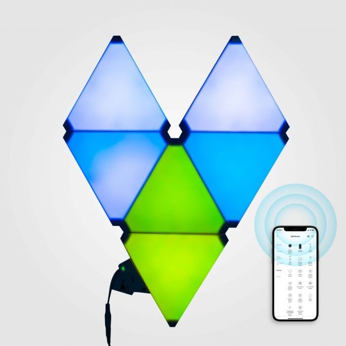 يعمل مع أشهر المساعدين الصوتيين يمكن التحكم بها عن طريق ريموت وتغير لون جميع المثلثات مره واحدة او كل مثلث على حدا سيناريوهات متعددة والوان مختلفة يمكن ربطه بالواي فاي او عن طريق البلوتوث