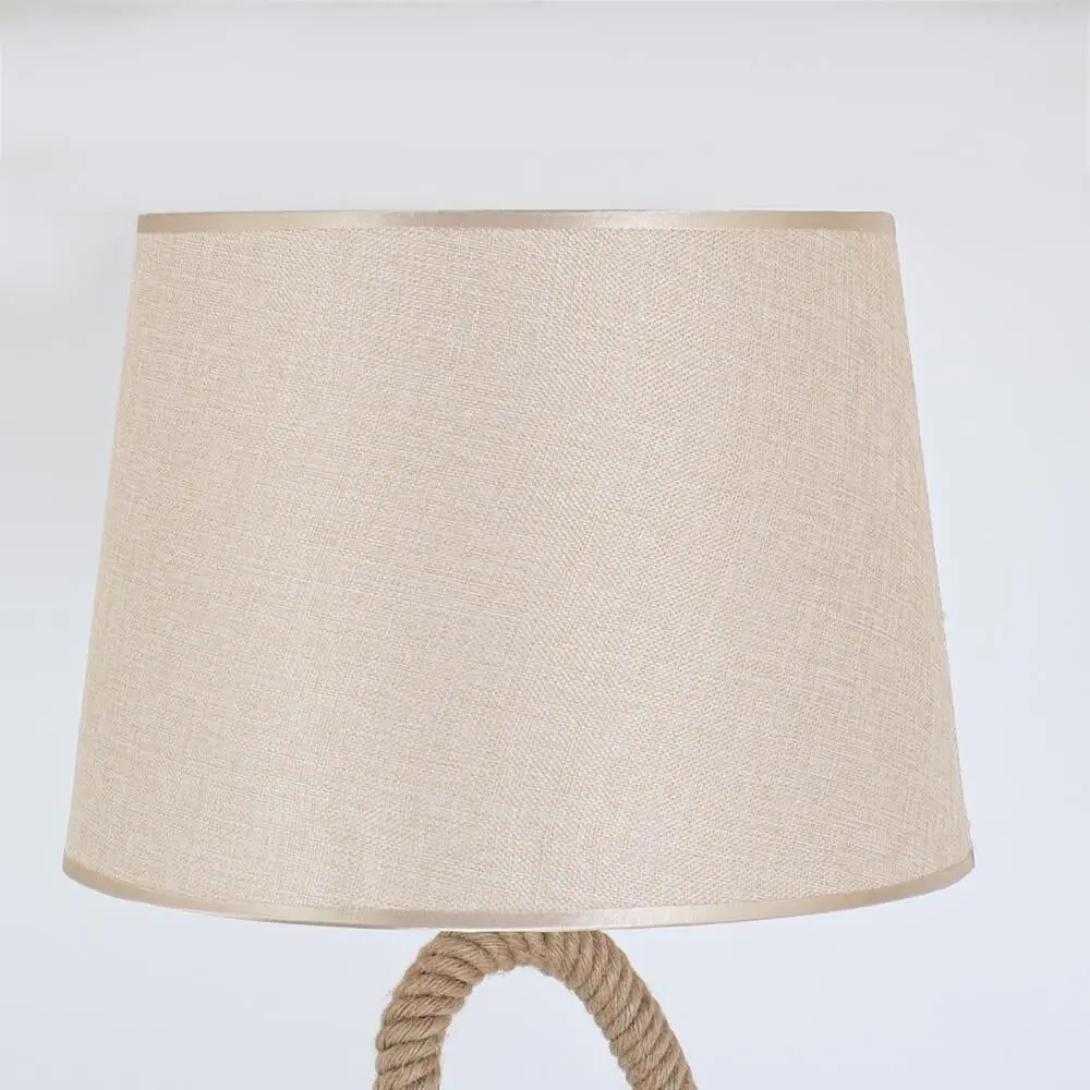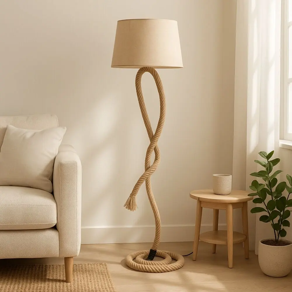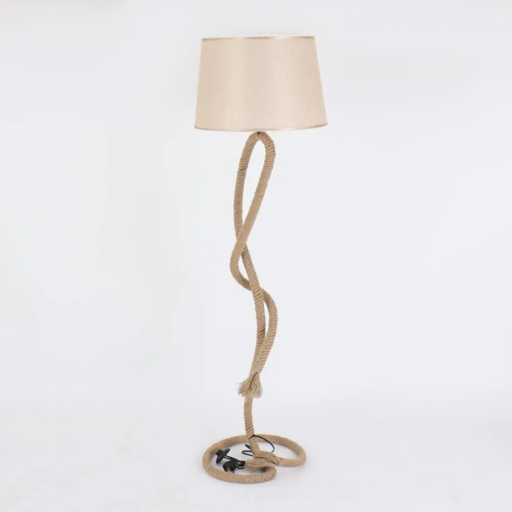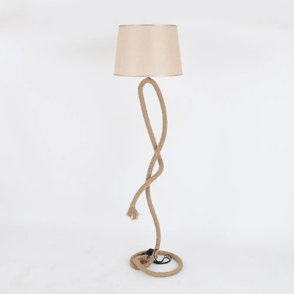 أبجورة أرضية بتصميم عصري وأنيق، تتميز بقاعدة منسوجة بحبل مما يضيف لمسة طبيعية ومميزة. توفر إضاءة دافئة ومريحة للمساحات المختلفة، مع توزيع ضوء متوازن. تعتبر إضافة رائعة لأي غرفة تحتاج إلى إضاءة إضافية ولمسة من الأصالة.