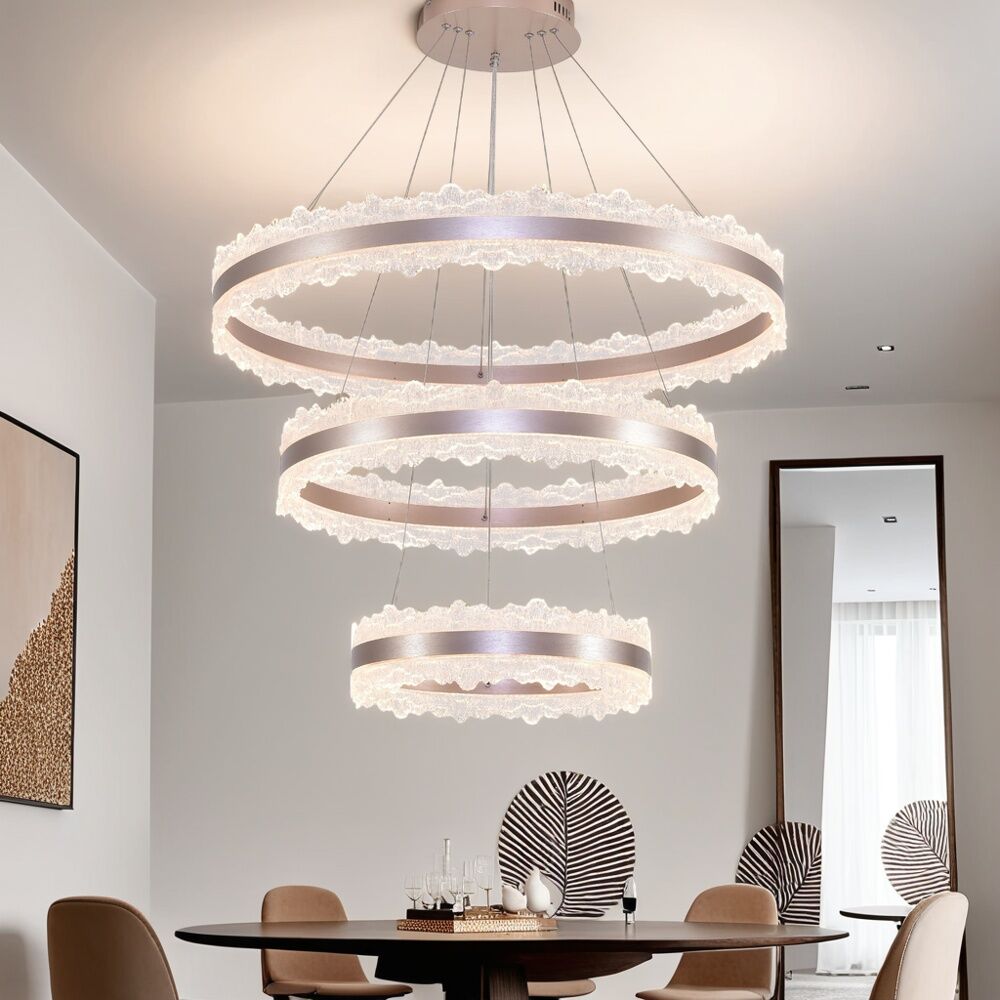 أنت تراجع:انارة معلقة ثلاثية دائرية بتصميم كريستالي ذهبي