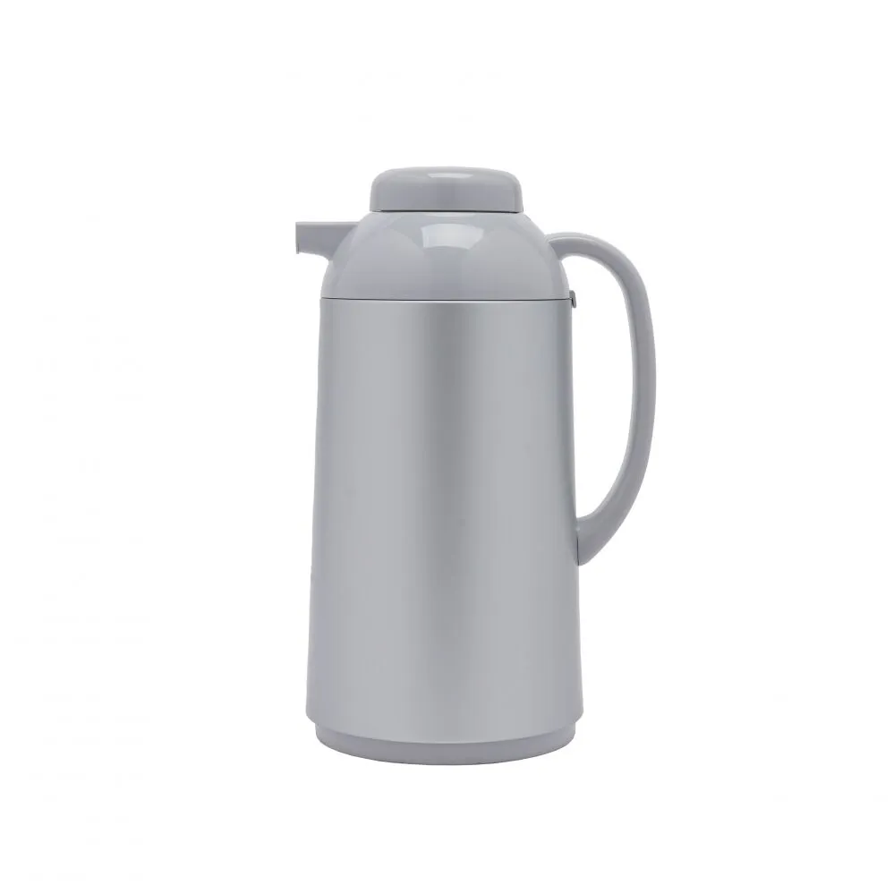 يأتي بتصميم أنيق ومتطور باللون الفضي الأنيق، كما يتميز بسعة 1000 مل، مما يسمح لك بتخزين كمية كافية من المشروبات الساخنة للاستمتاع بها في أي وقت، يحتوي الترمس على غطاء محكم مع فوهة لتصب المشروبات بسهولة ودقة.