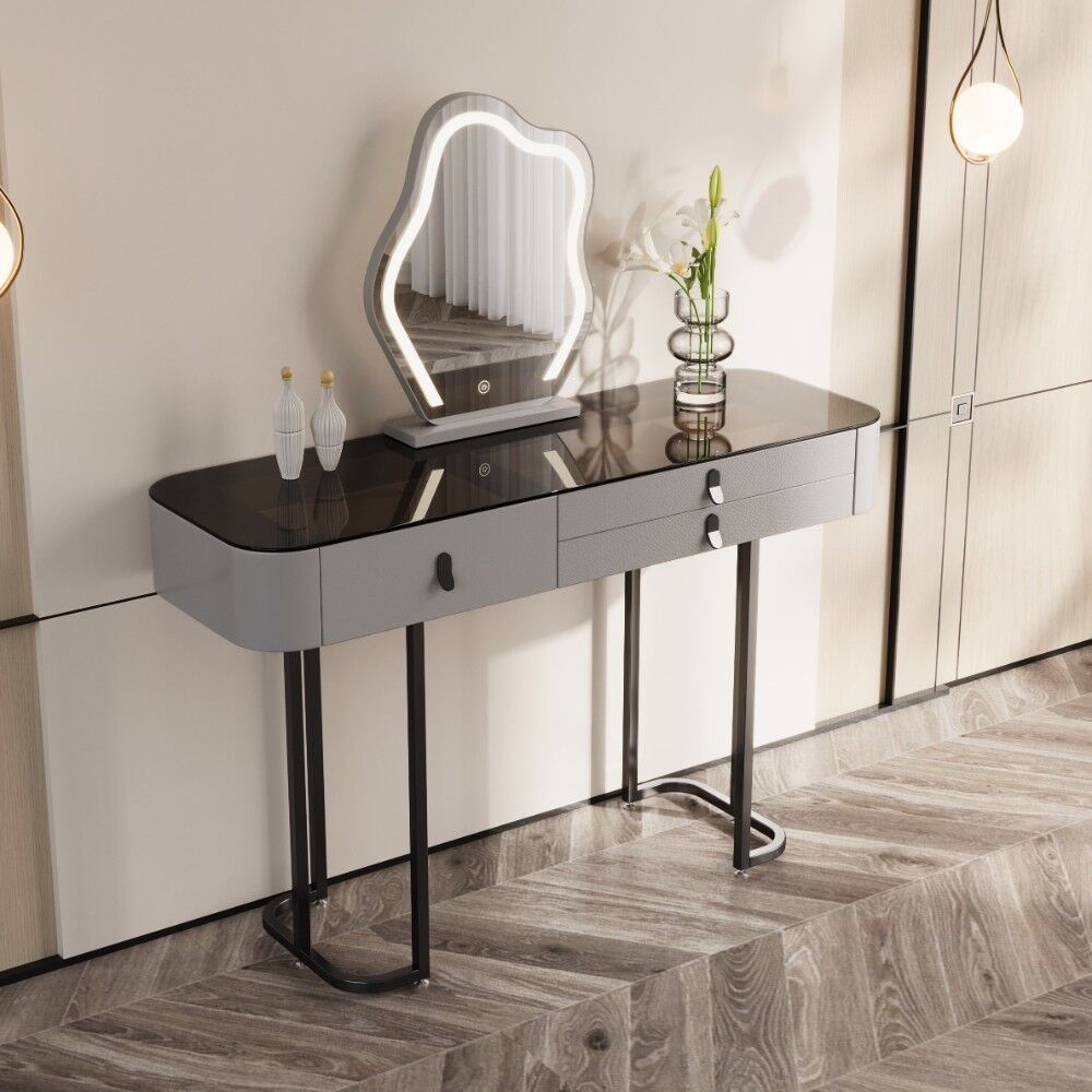 تسريحة مع مرآة بيلا - رمادي واسود – أناقة عصرية بتفاصيل فاخرة