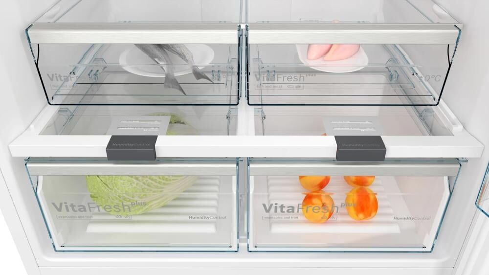 ثلاجة بوش من سلسلة Serie 6، تجمع بين التصميم العصري والسعة الكبيرة، مع تقنيات متقدمة مثل إضاءة LED ورف ايزي اكسس لتوفير تجربة استخدام مريحة وفعالة.