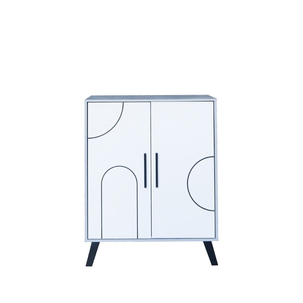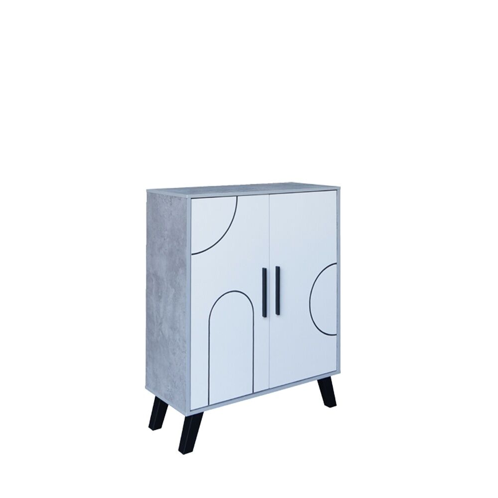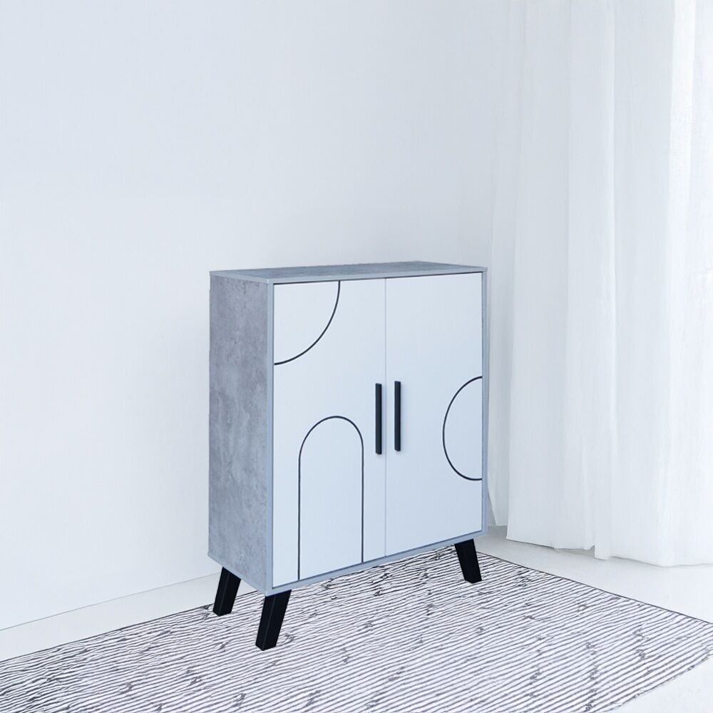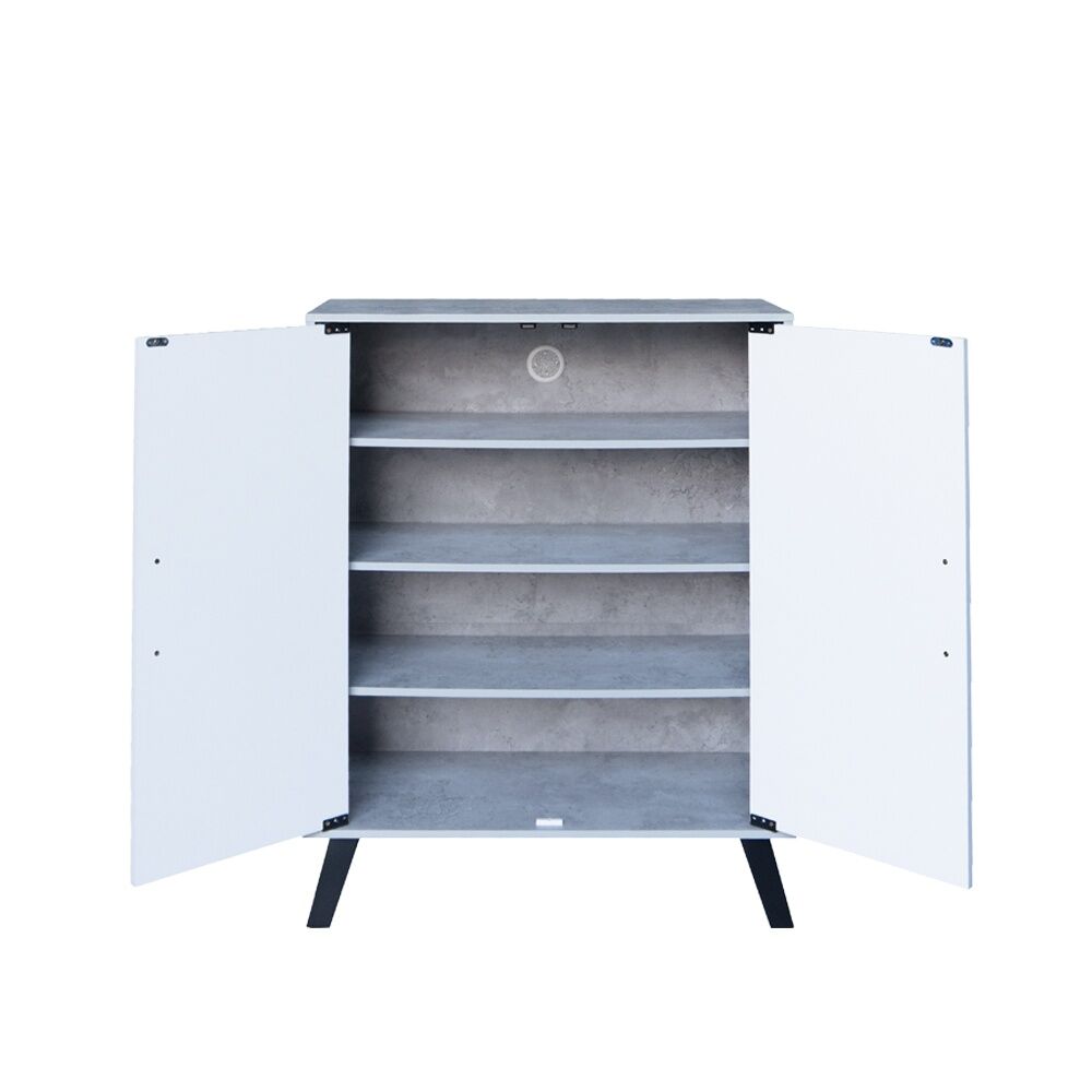 خزانة أحذية بابين خشب ماليزي - أبيض ورمادي