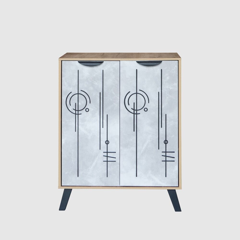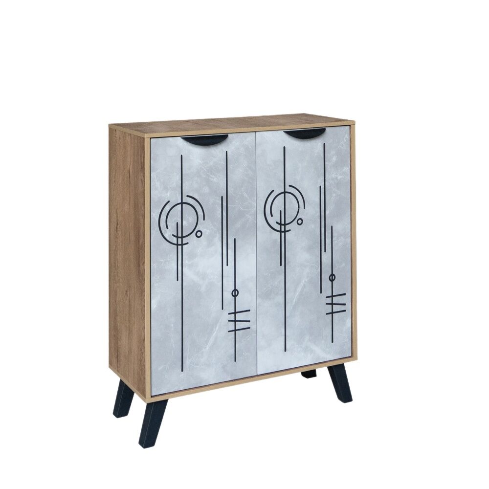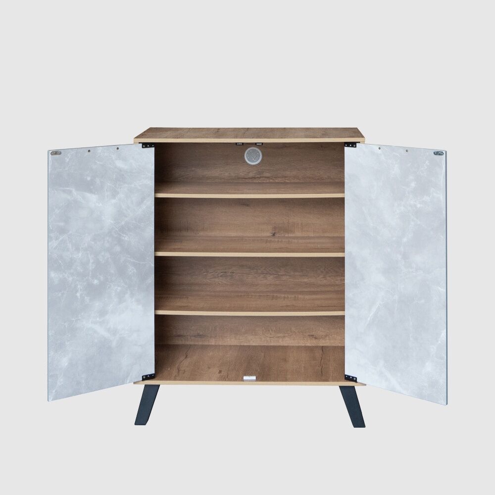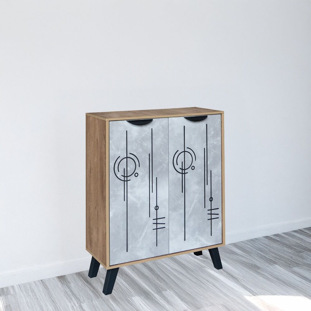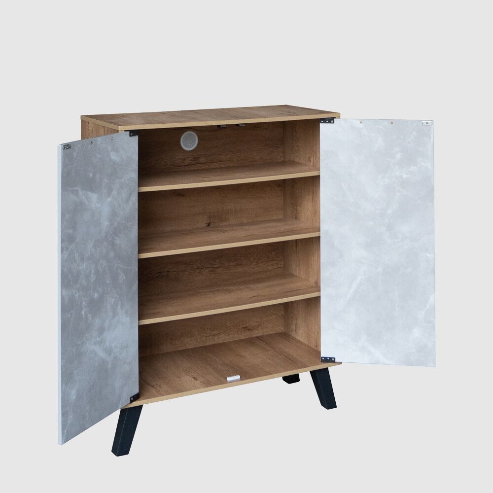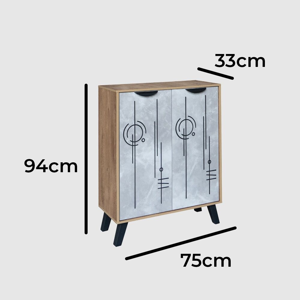 خزانة أحذية بابين خشب ماليزي ريماس - خشبي ورمادي