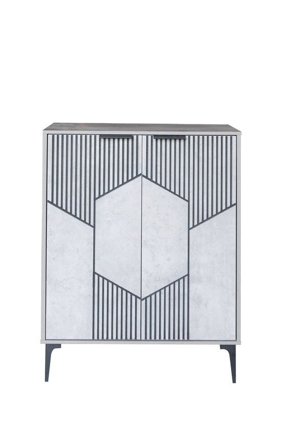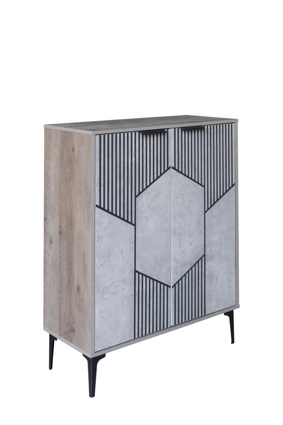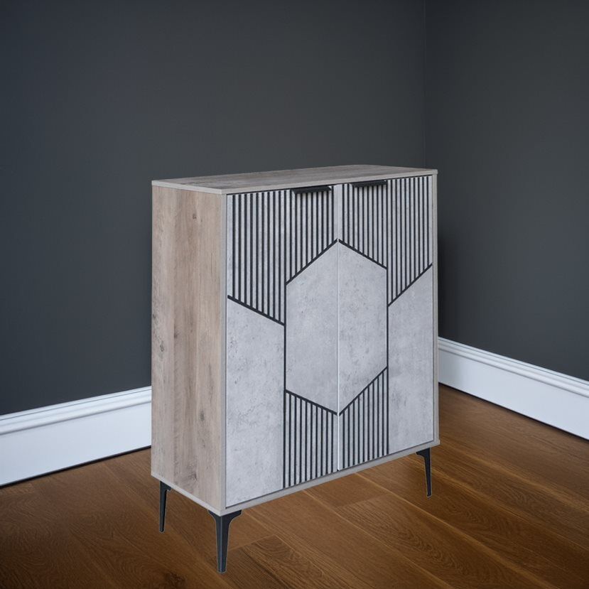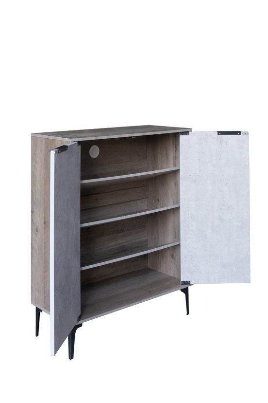 خزانة أحذية بابين خشب ماليزي لندن - رمادي وخشبي